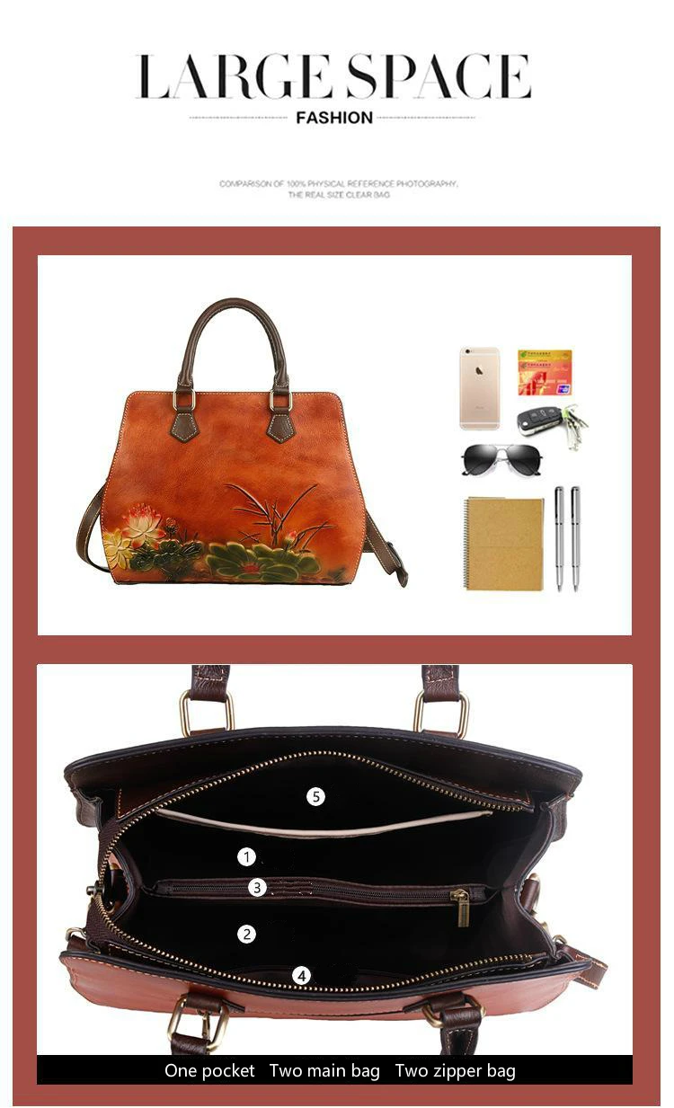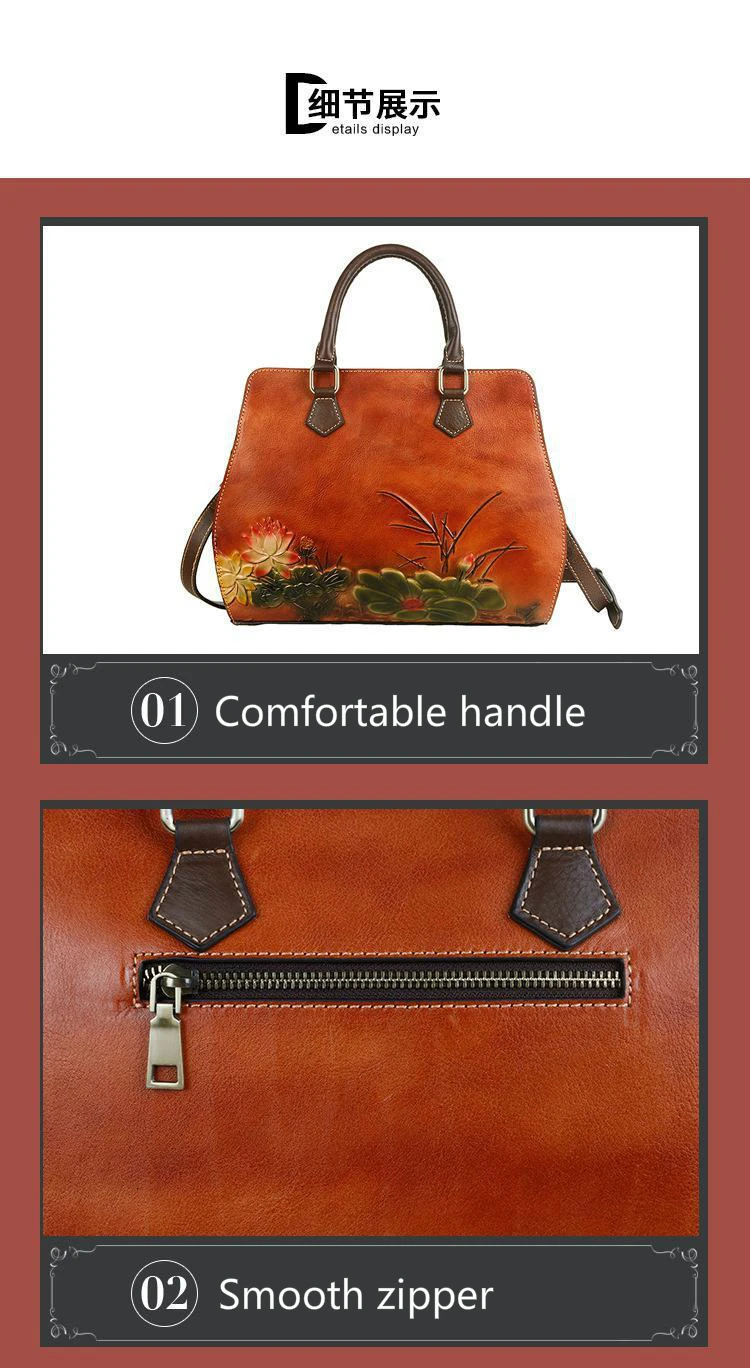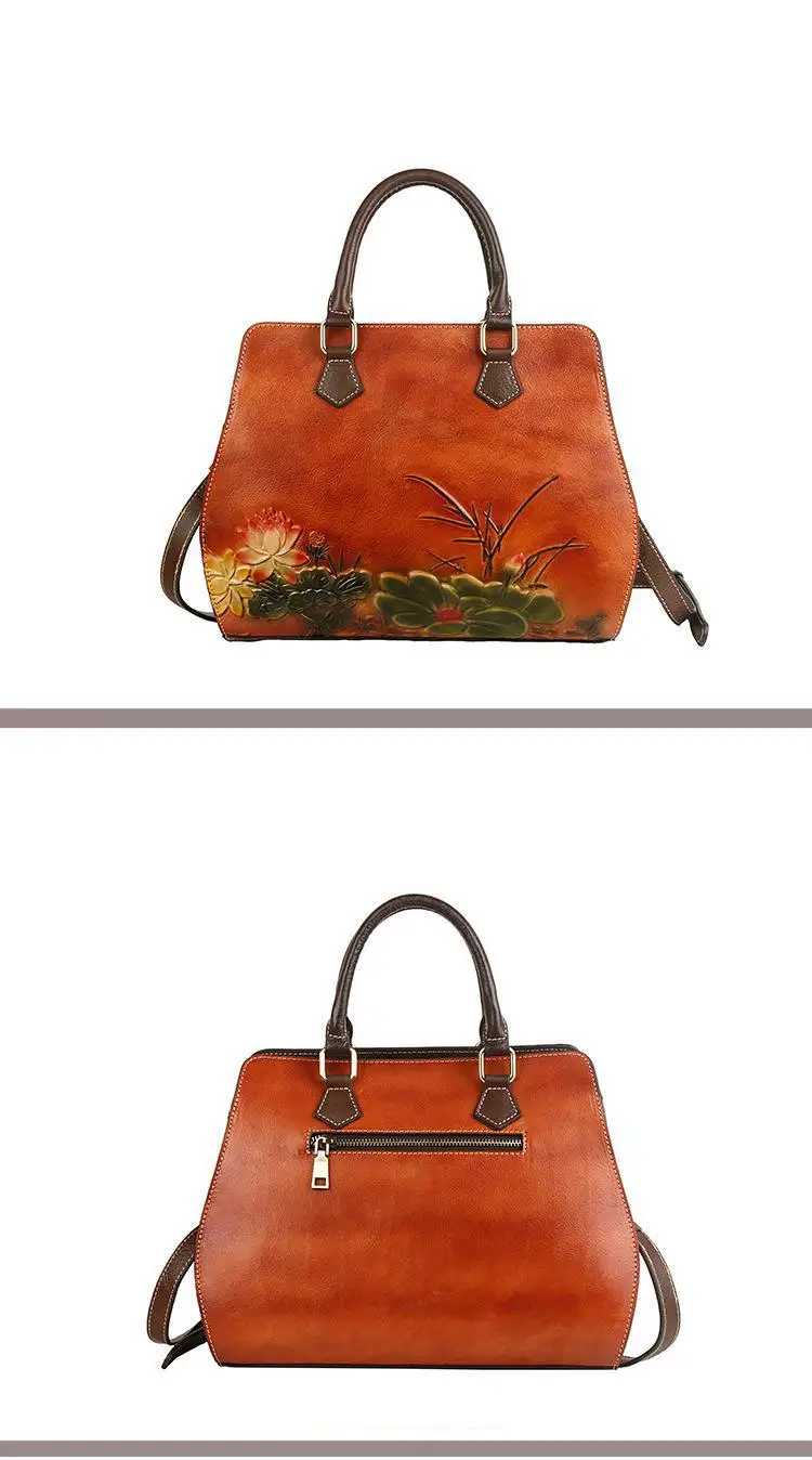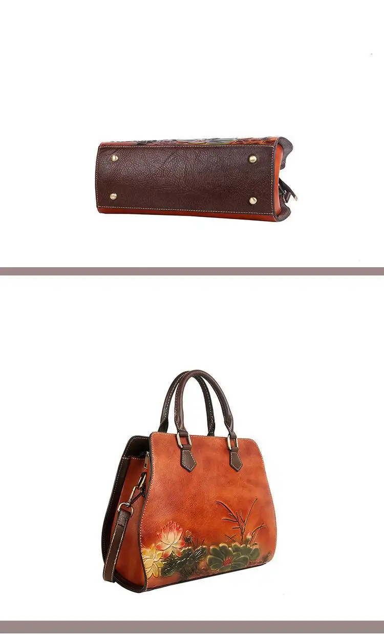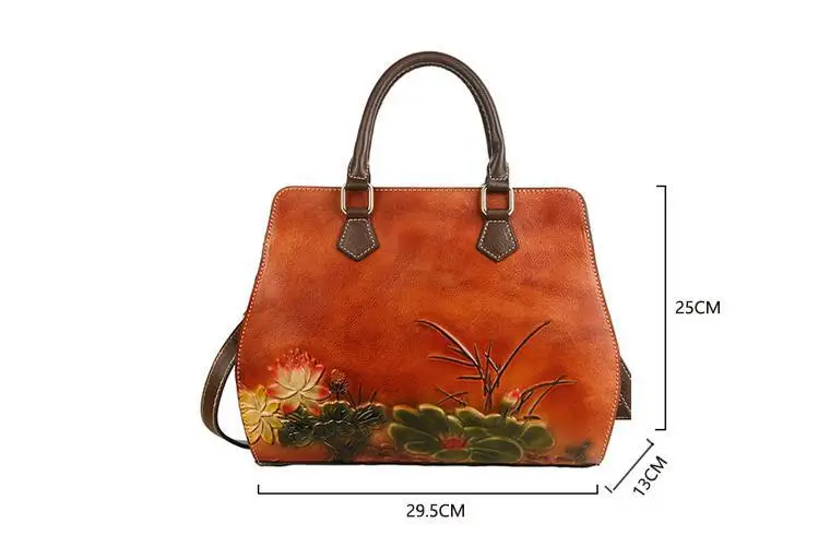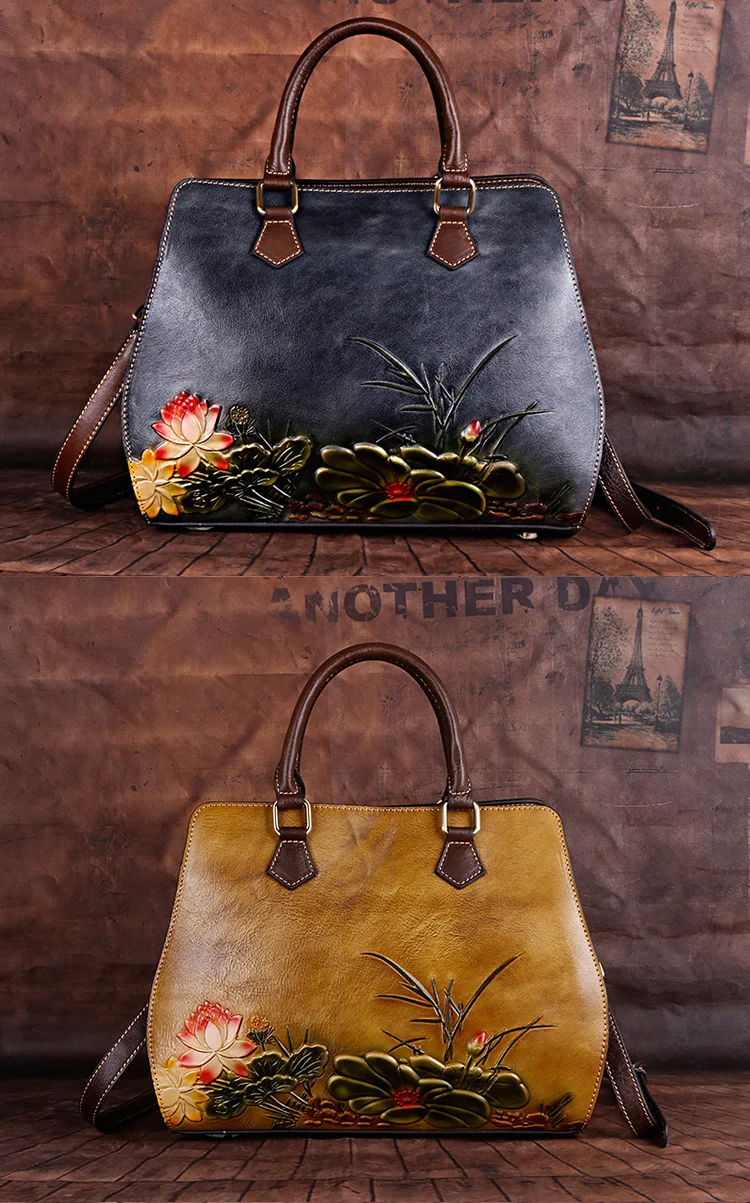 Women's Bag Retro Genuine Leather Shouder Bags For Women New Handmade Embossing Handbag Large Capacity Casual Bag Female