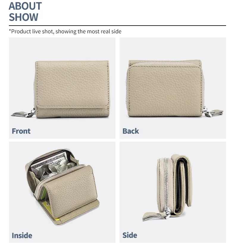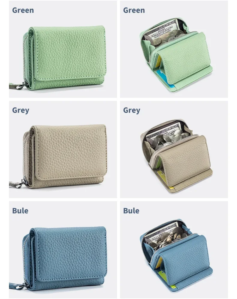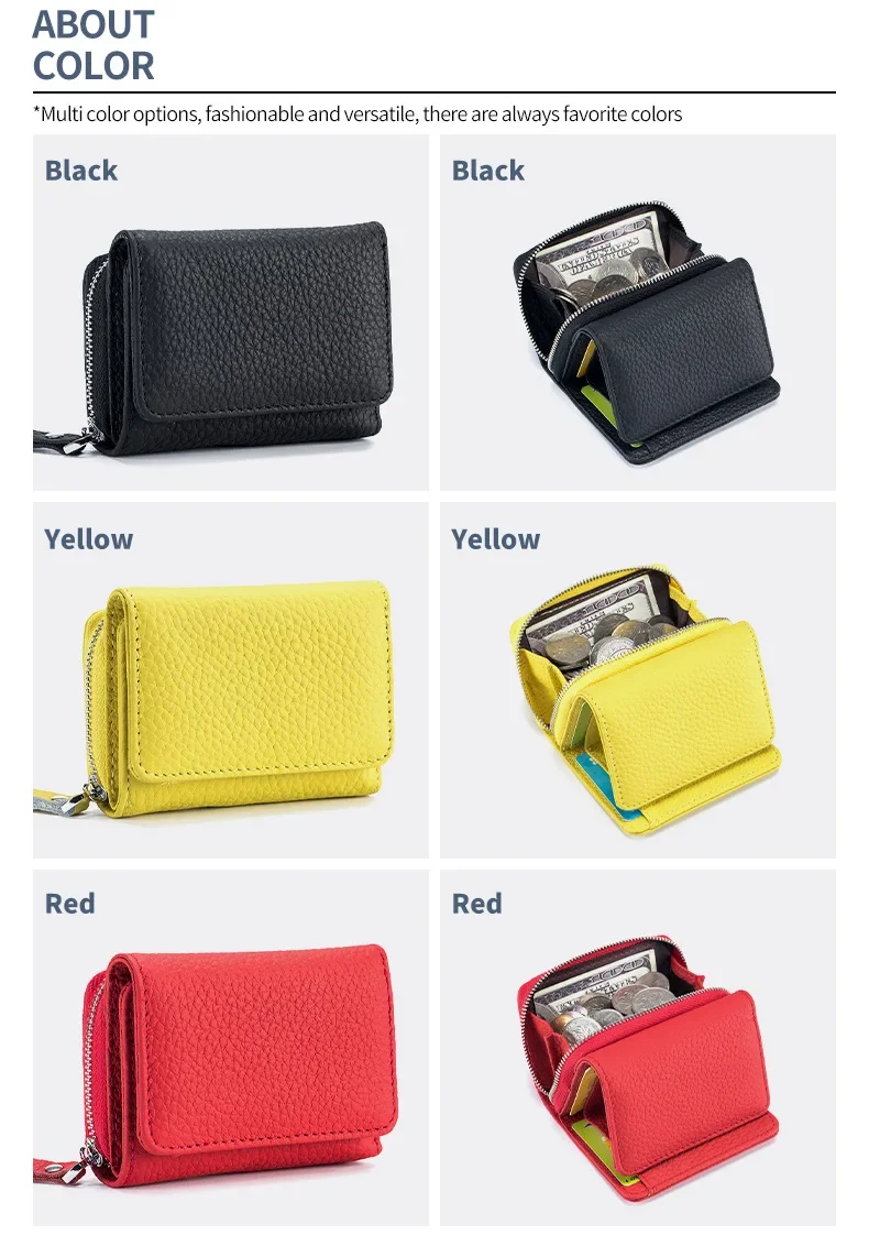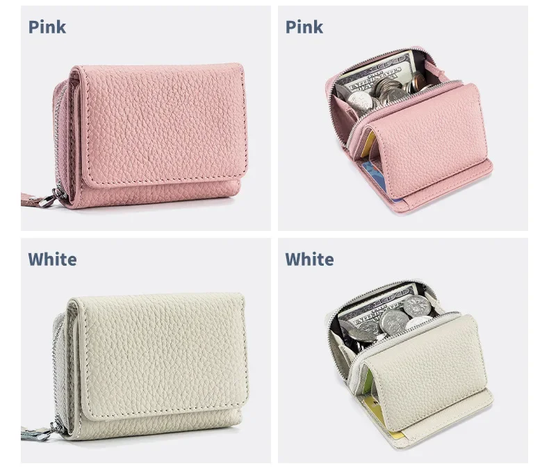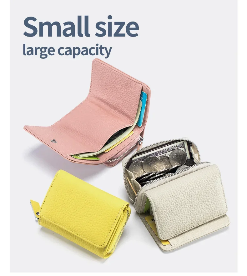Women's Mini RFID Short Wallet with Genuine Leather Large Capacity Multifunctional Change Storage Purse Cute Wallet for Girls