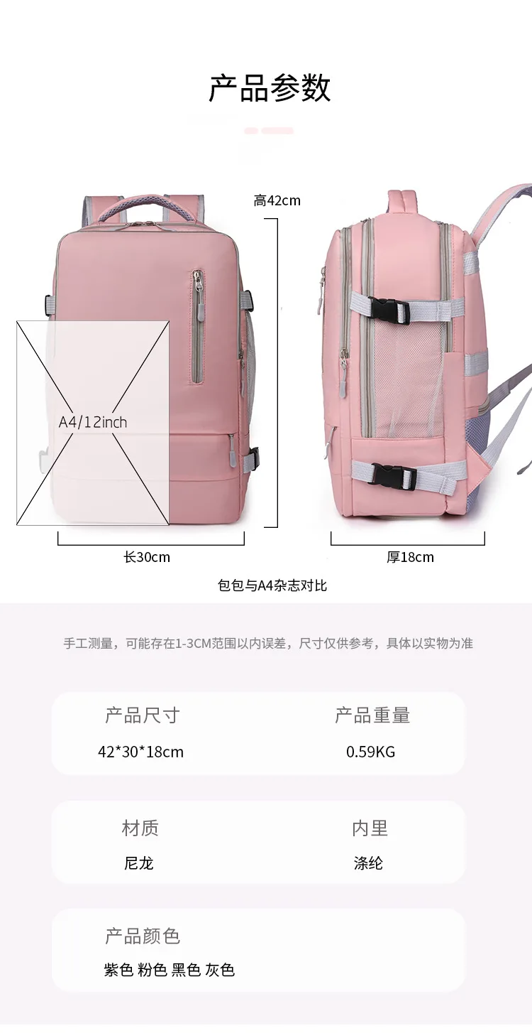 Ladies Large Capacity Lightweight Travel Bag Luggage Backpack Traveler Accessories Waterproof Duffle Bag Portable Storage Pack
