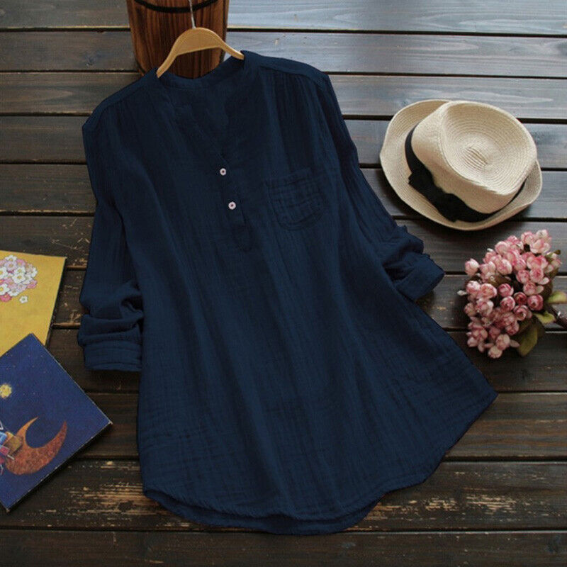 Specifications: 100% Brand new and high quality. Size:S,M,L,XL,XXL,3XL,4XL,5XL Color: white,pink,navy blue Material: Polyester Sleeve length:long sleeve Neckline:round neck Pattern:solid color Season:spring,summer,autumn Note: 1.Due to the light and screen difference, the item's color may be slightly different from the pictures. Please understand. 2.Please allow 2-3% error due to manual measurement.Please make sure you don’t mind before you mid. 3.Size doesn’t fit all.Please carefully check size chart and select the size based on your real size. Care Instructions: Wash before wear Cold gentle machine wash Do not bleach Do not tumble dry Drip dry Package:1 pcs women blouse