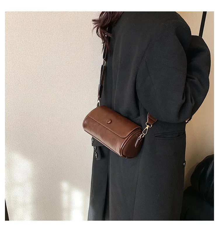 Women's Retro Shoulder Spring New Fashion Messenger Niche High Sense Cylinder Crossbody Bag