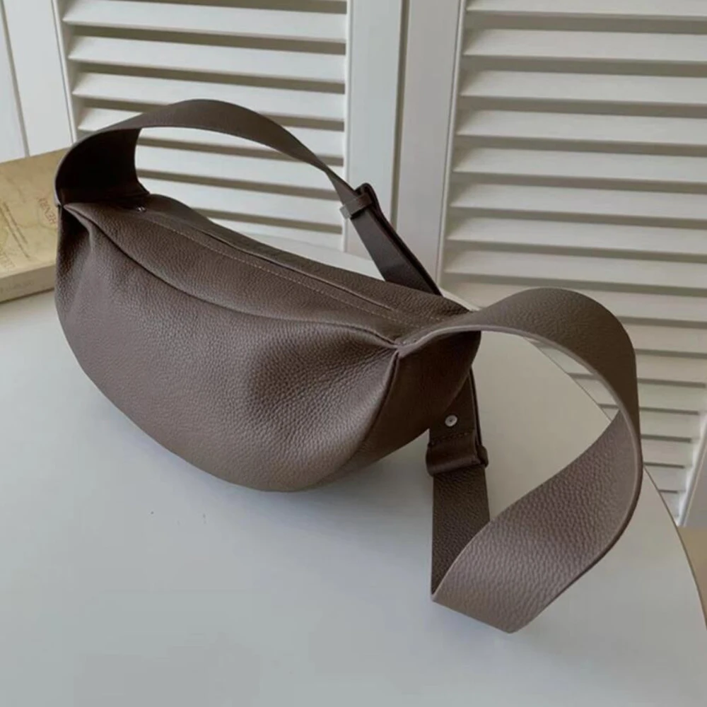 Women's Trend Genuine Leather Shoulder Bag Luxury High Quality Crossbody Brand Cow Skin Saddle Bag Female Wide Strap Hobos Bag