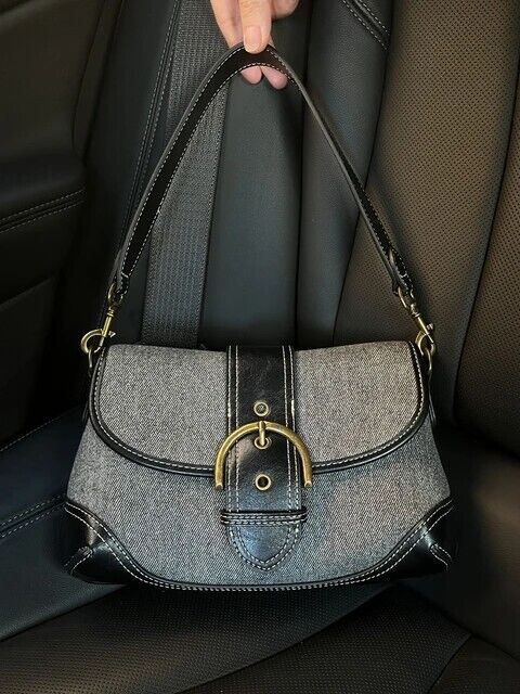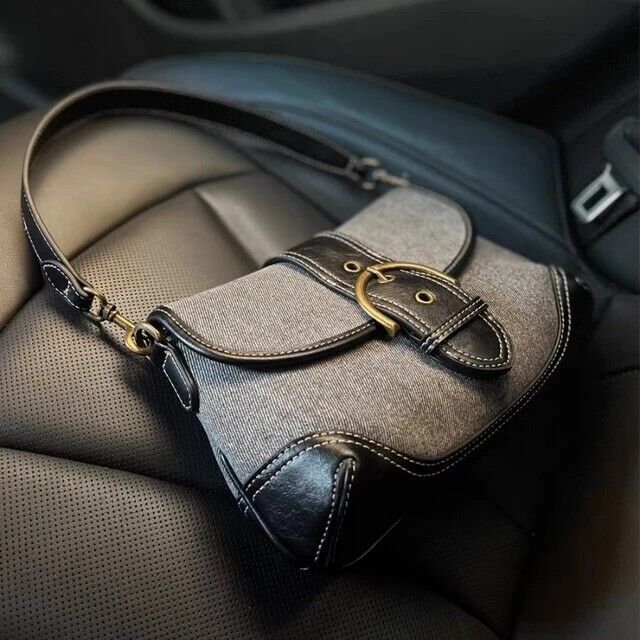 This women's vintage underarm handbag is the perfect addition to any outfit. The elegant denim bag features a solid pattern with black PU leather handles. The gold hardware accents and buckle accent add a touch of classic style to the piece. This shoulder bag is suitable for any occasion, whether it be a casual outing or a formal event. The exterior is made of high-quality PU leather and denim fabric, while the interior is lined with soft polyester. The gray and black color scheme with black lining enhances the sophisticated look of this retro gift. This shoulder bag is the perfect accessory for any woman looking to add a touch of vintage to her wardrobe. |
