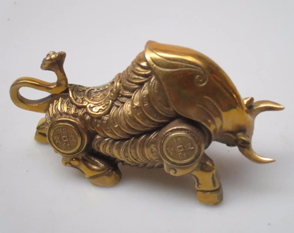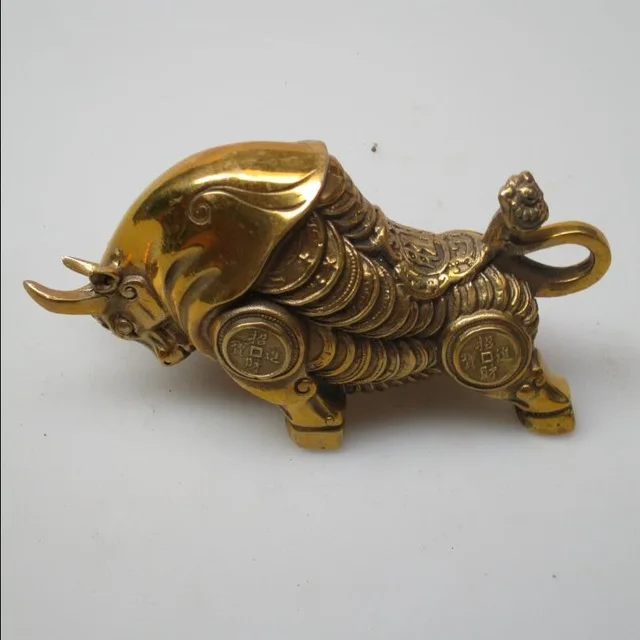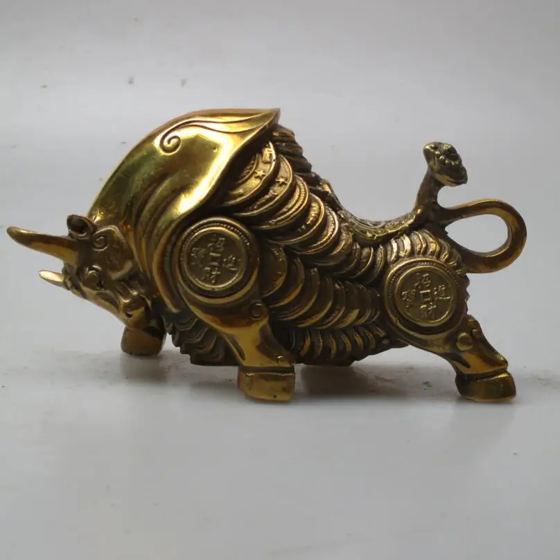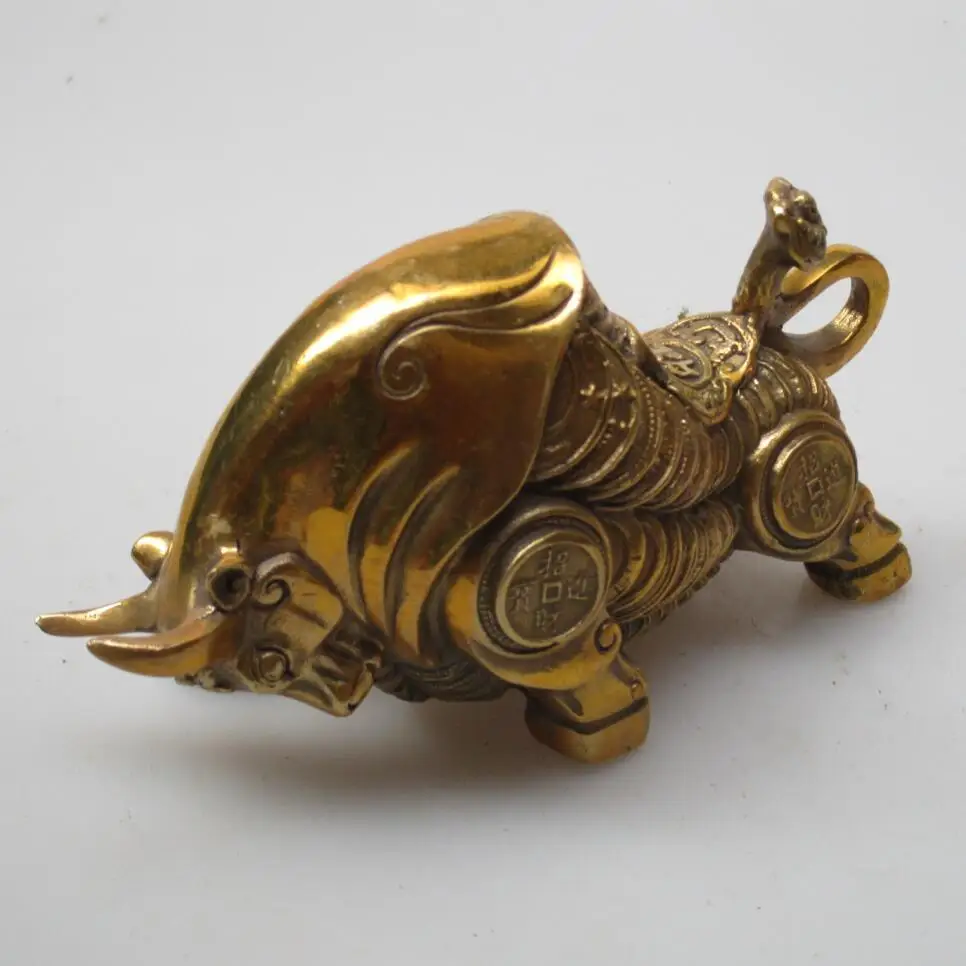 works of art Collection Chinese Brass Carved Bull Sculpture /Feng Shui Money OX statue.
