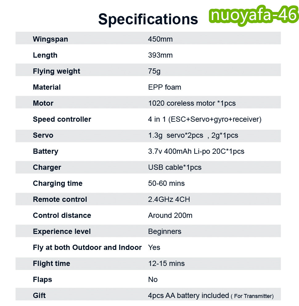 Plane Wingspan: 450mm