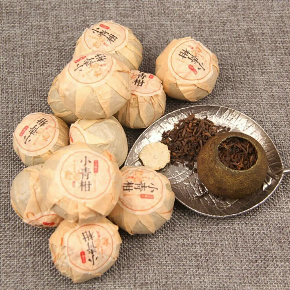 Product Name: Xinhui Mandarin Yunnan Shu Pu-erh Chinese Tea Orange ripe Pu-erh Net Weight: 100g/box Product Date: 2020/2021 Products Series: XinHui Tangerine Peel puer Tea Type: Ripe Puer, shu puer Shelf Life: The longer the better Storage: Dry and Ventilated, Clean, Avoid direct sunlight, No peculiar smell
