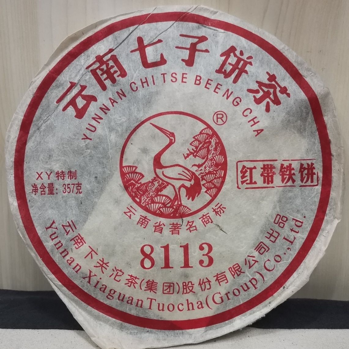 XY 8113 Red Belt Iron Cake Xiaguan Puerh Tea Factory Sheng Puer 357g