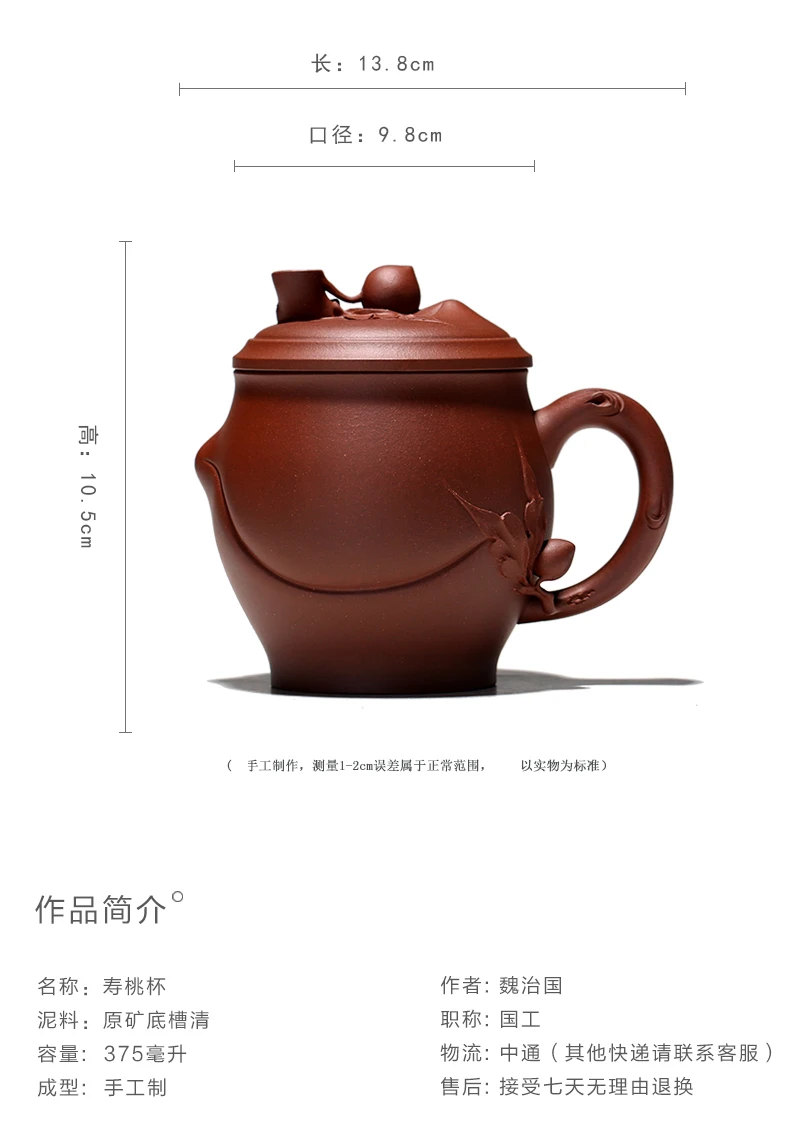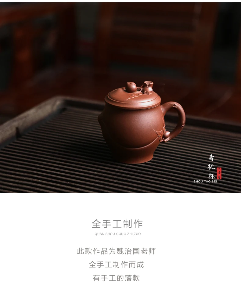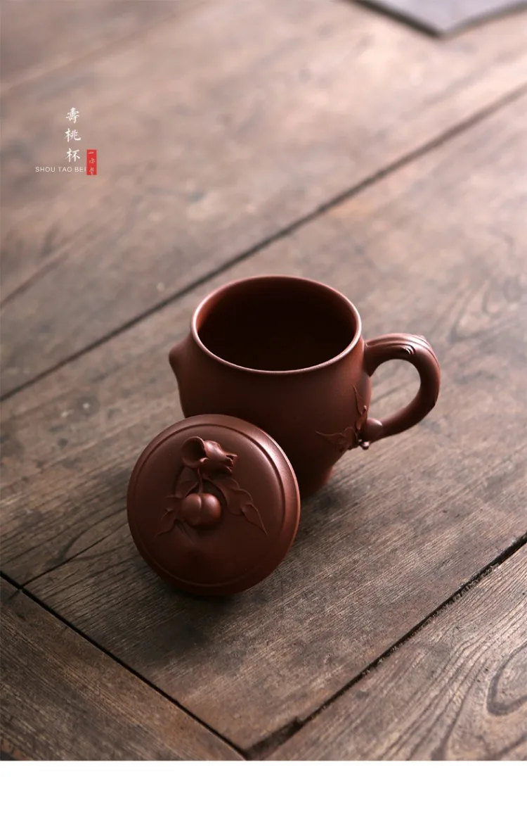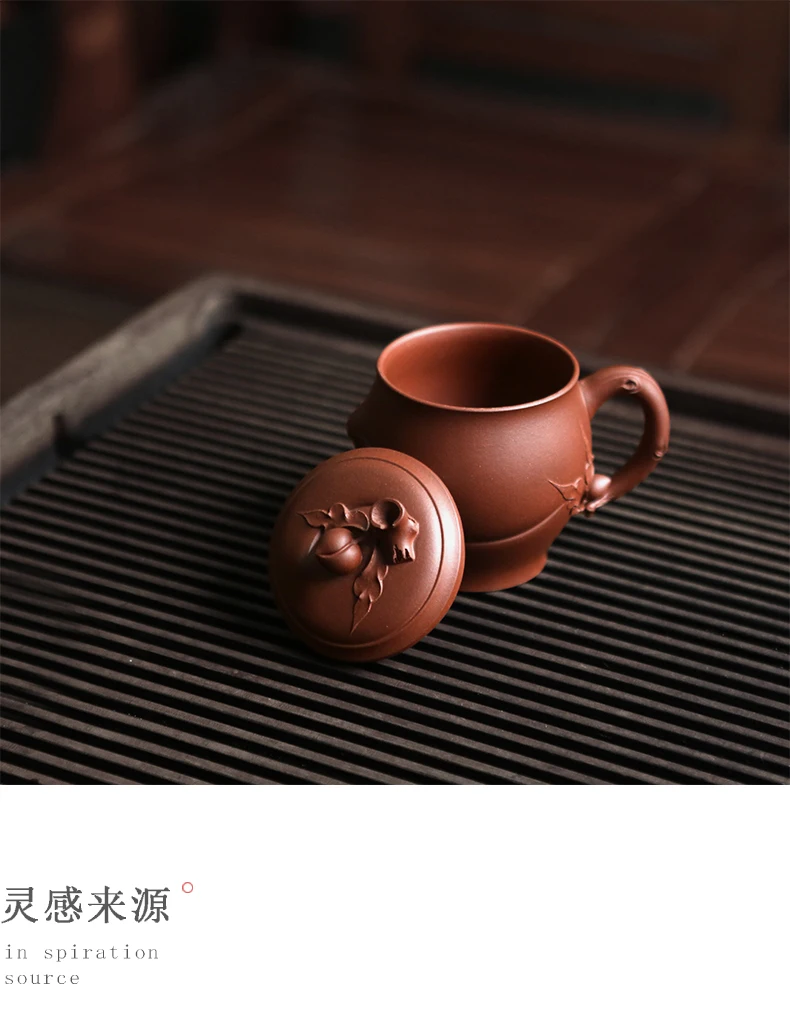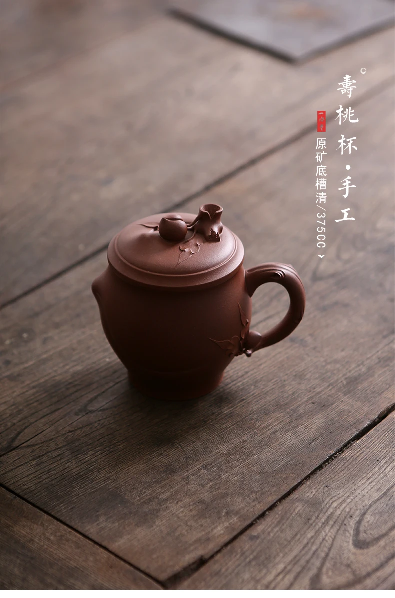 Yishuitang raw ore purple sand cup Yixing handmade Shoutao cup big tea cup cover cup raw ore bottom groove cleaning