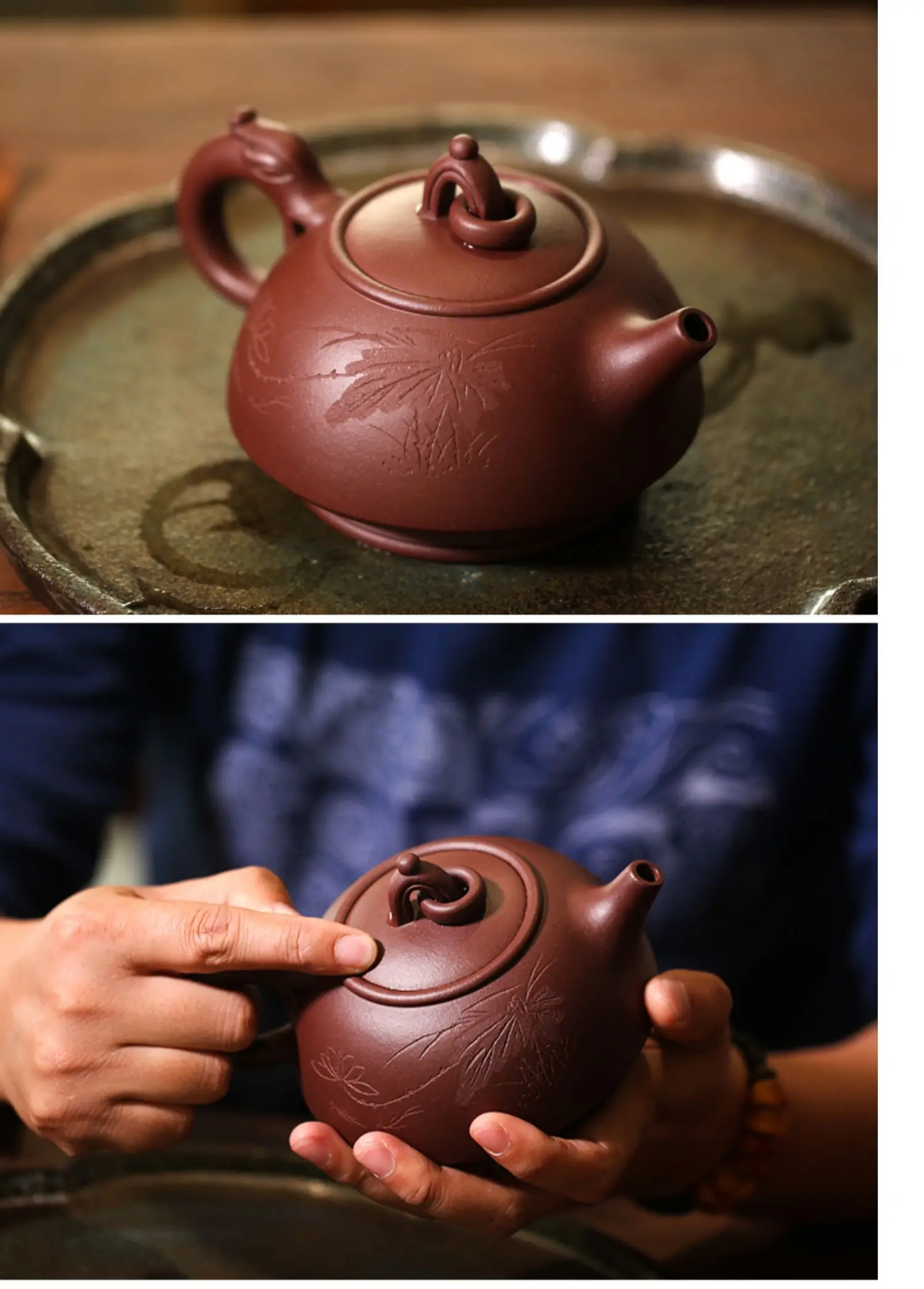 Yishuitang Yixing purple clay teapot hand made old purple clay Qianlong teapot 455ml Teapot Tea Set