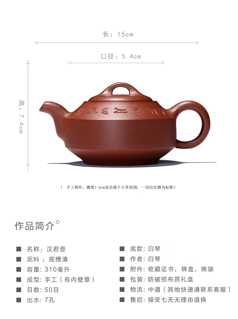 Yishuitang Yixing purple clay teapot raw ore pure manual Teapot Set household 92 bottom trough qinghanjun teapot 310c
