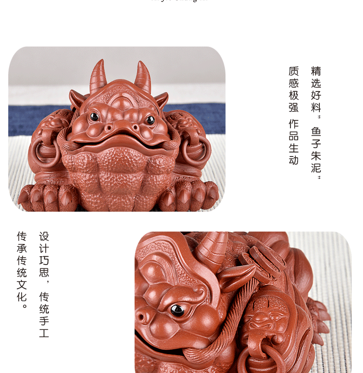 Yixing Fine Zisha Golden Toad Tea Ornaments Ornaments Raw Ore Handmade Supportable Domineering Cattle Toad Three Feet Golden Toa