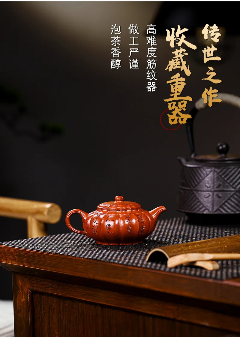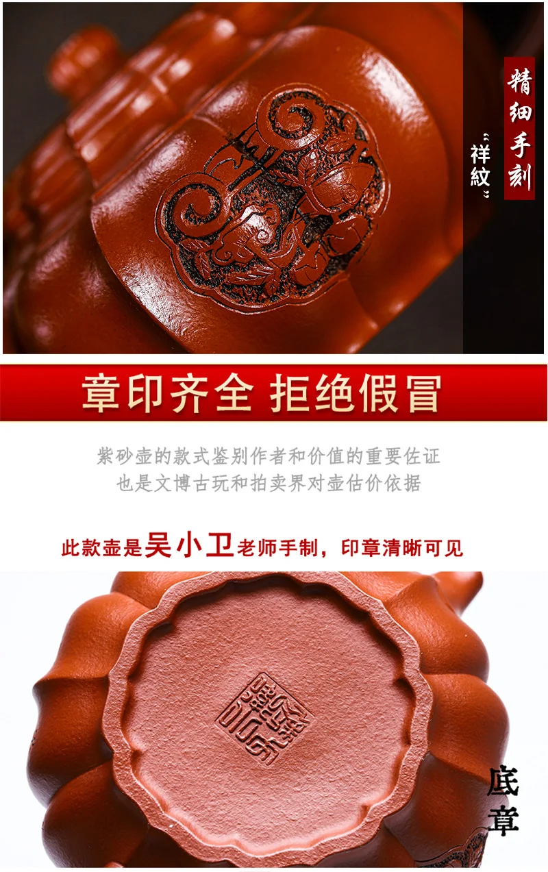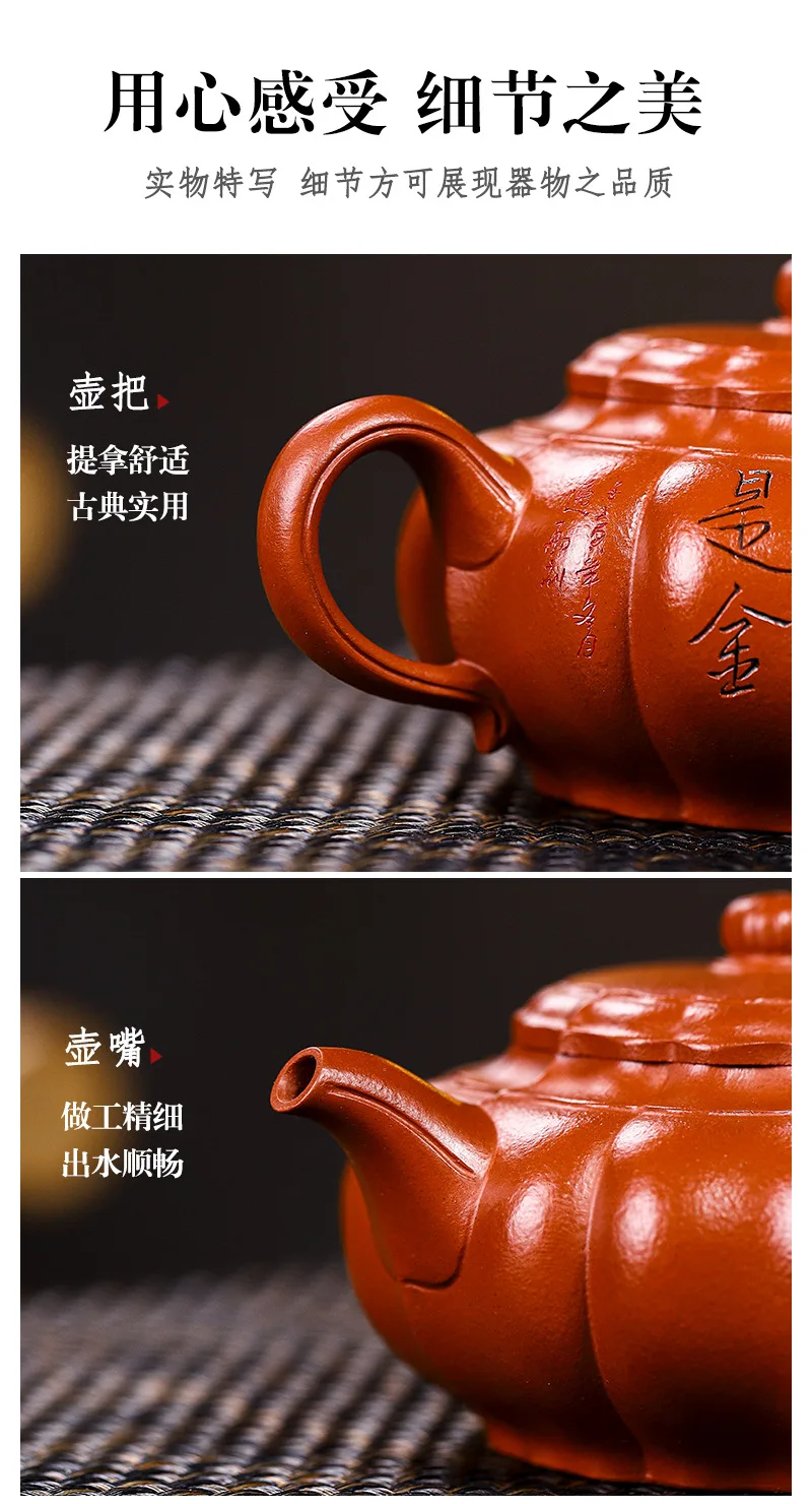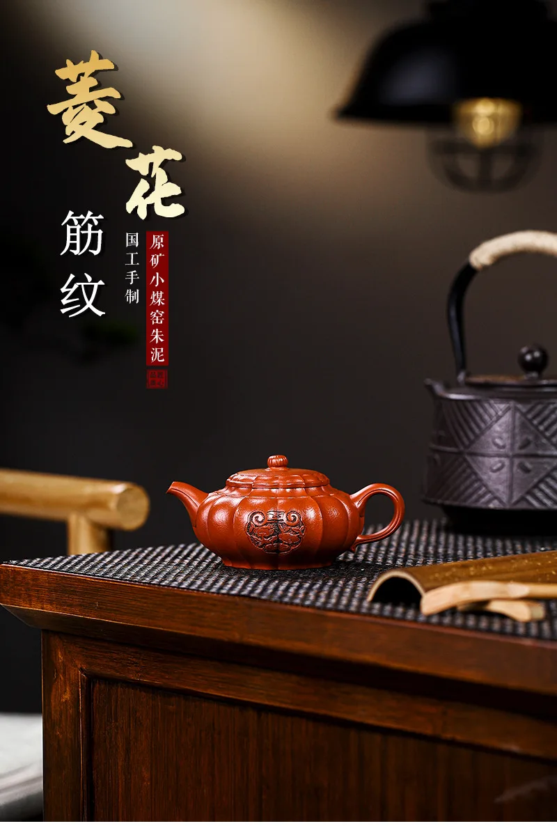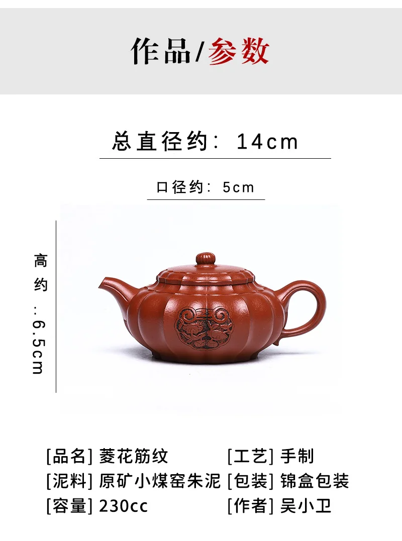 Yixing Handmade Yixing Clay Teapot Certificate Full Xiaomei Cellar Cinnabar Sand Rhombus Rib Pattern Easy to Pack Pulp