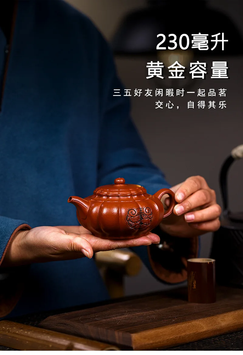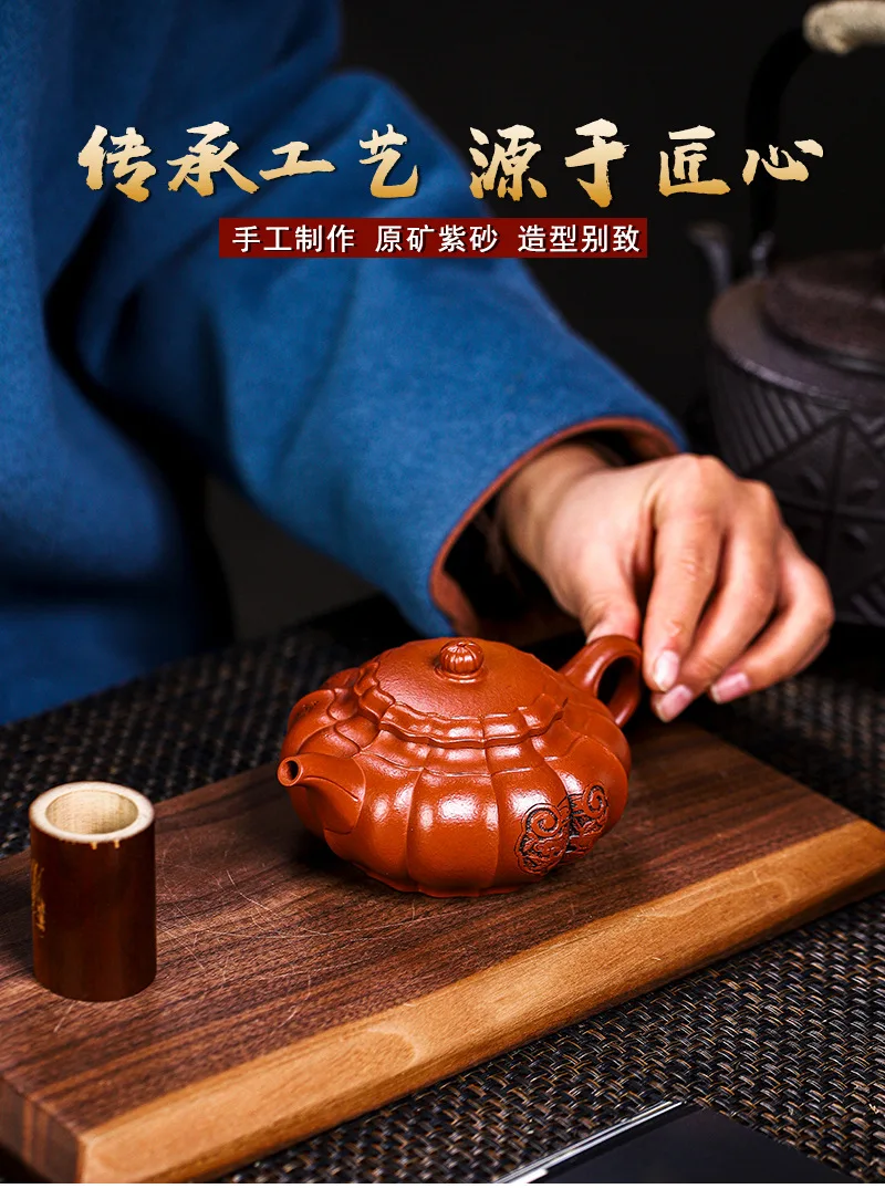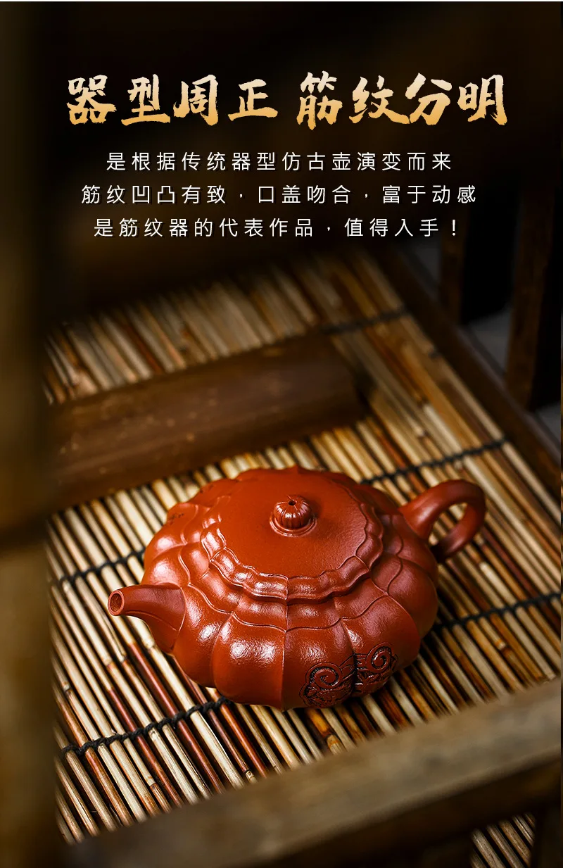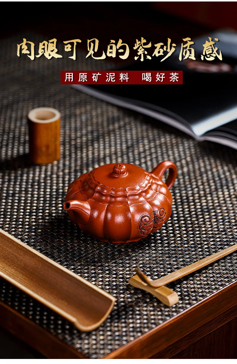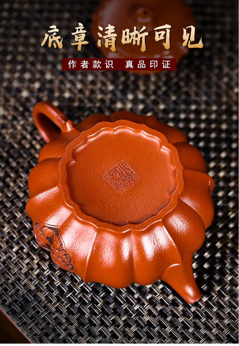 Yixing Handmade Yixing Clay Teapot Certificate Full Xiaomei Cellar Cinnabar Sand Rhombus Rib Pattern Easy to Pack Pulp