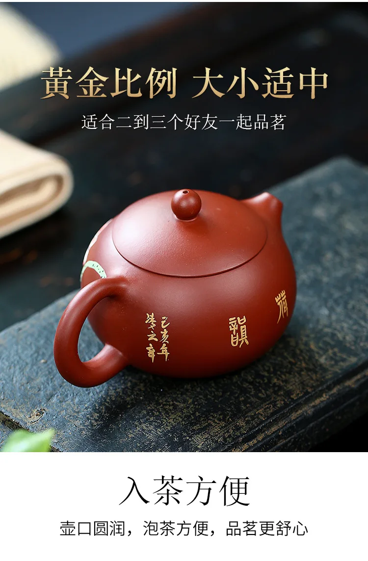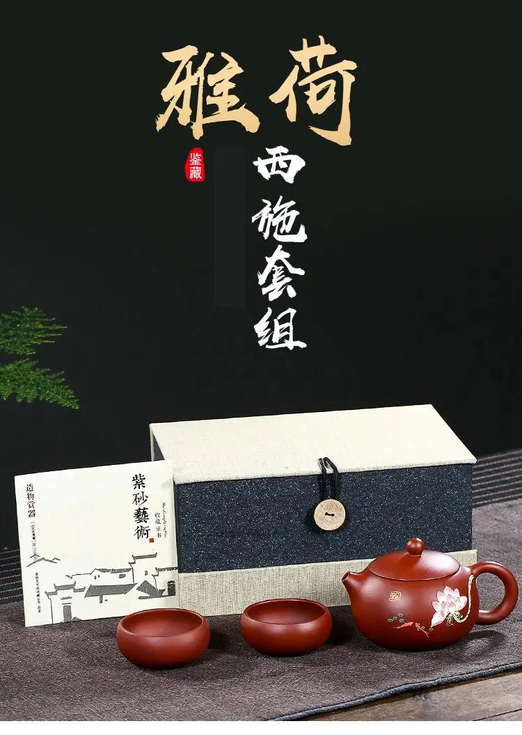 Yixing ore Dahongpao handmade purple sand pot Yahexi Shi teapot ball hole out of a pot of two cups of tea set