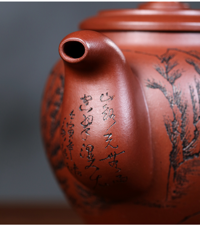 Yixing Purple Clay Pot Carved Teaware Pot Raw Ore Dragon Blood Sand Teapot Zen