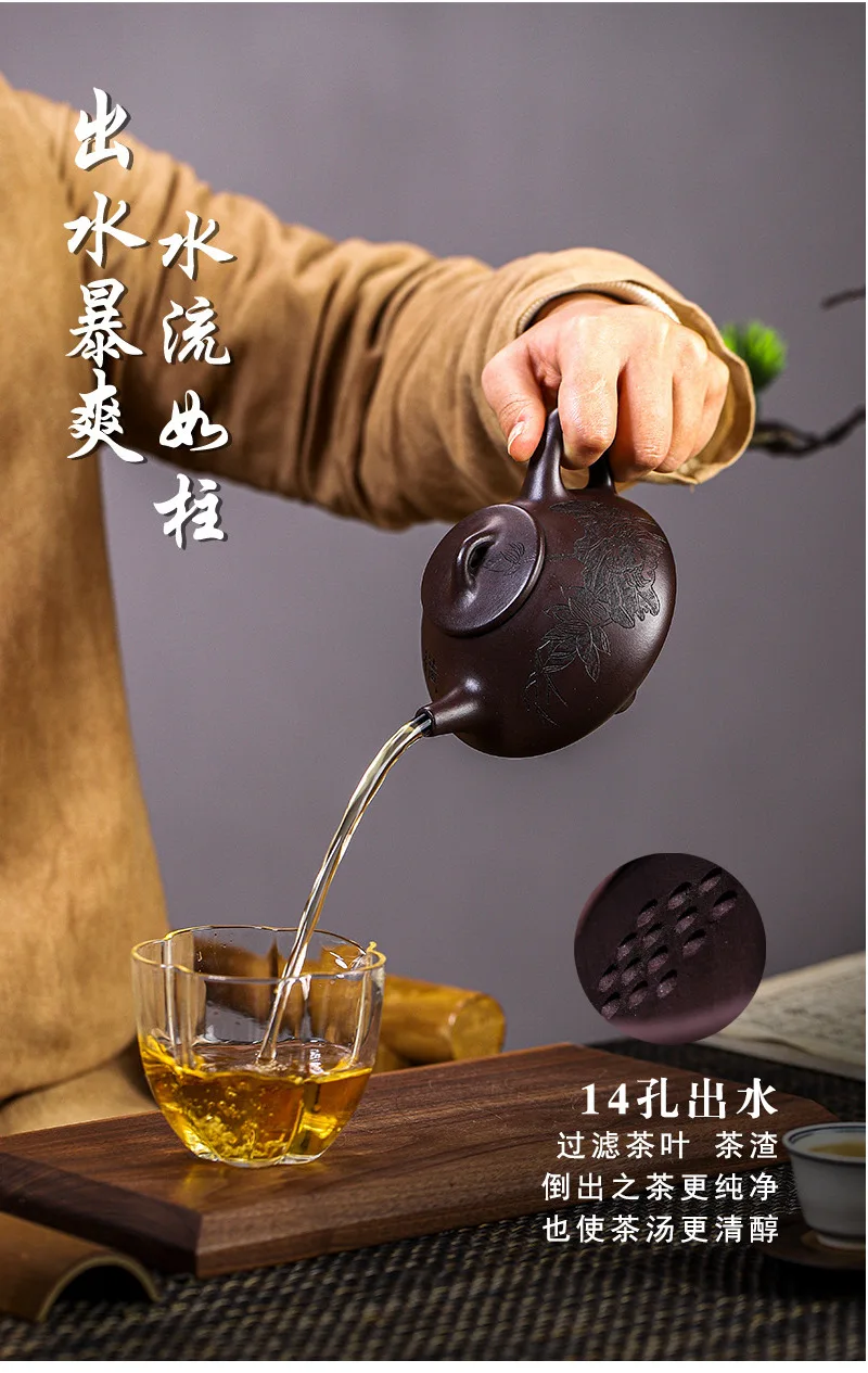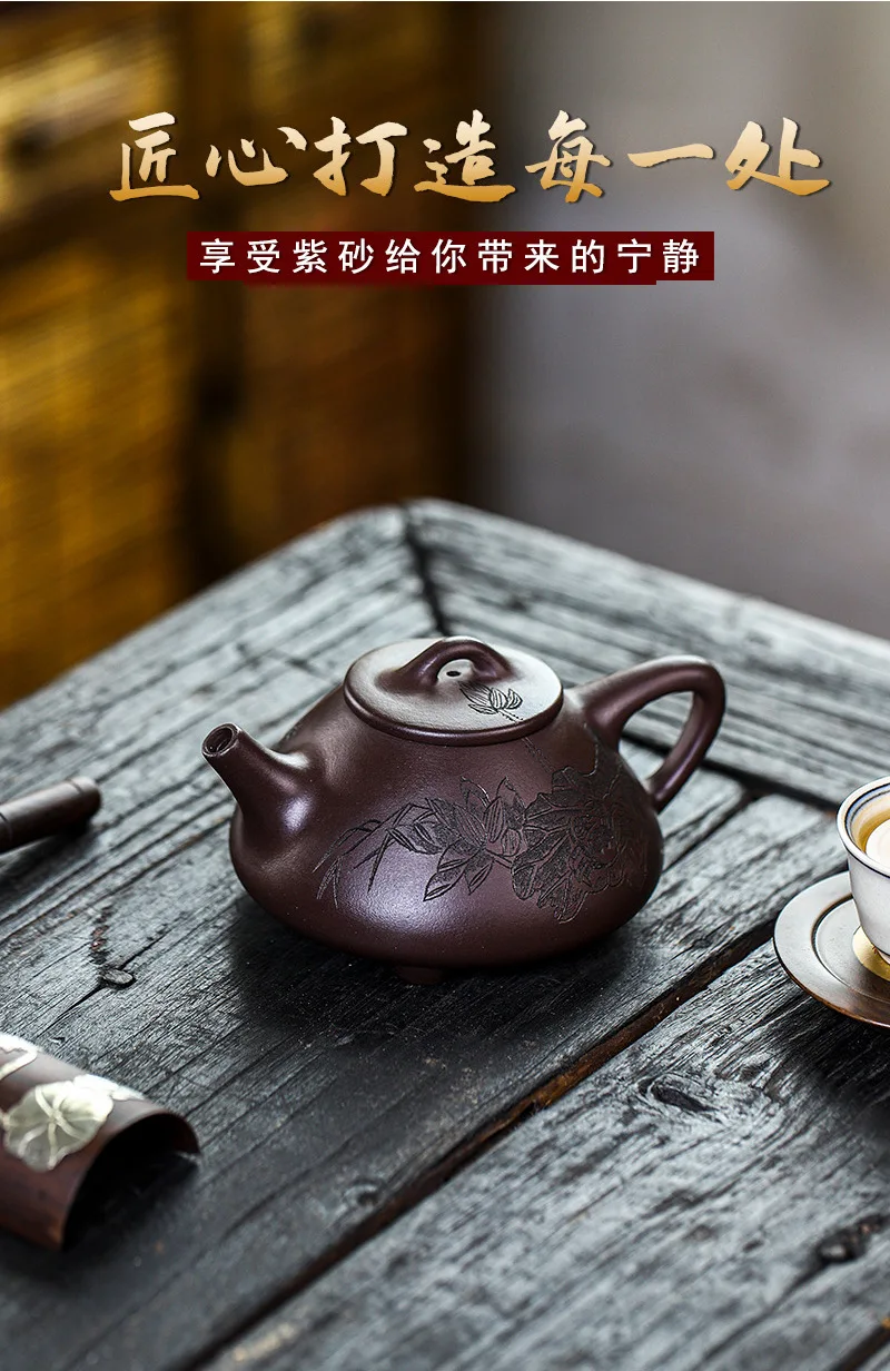 Yixing Purple Clay Pot Handmade Ripe Stone Ruby Ruyi Pu'er Chinese Tea Pot Kung Fu Tea Set 300ml