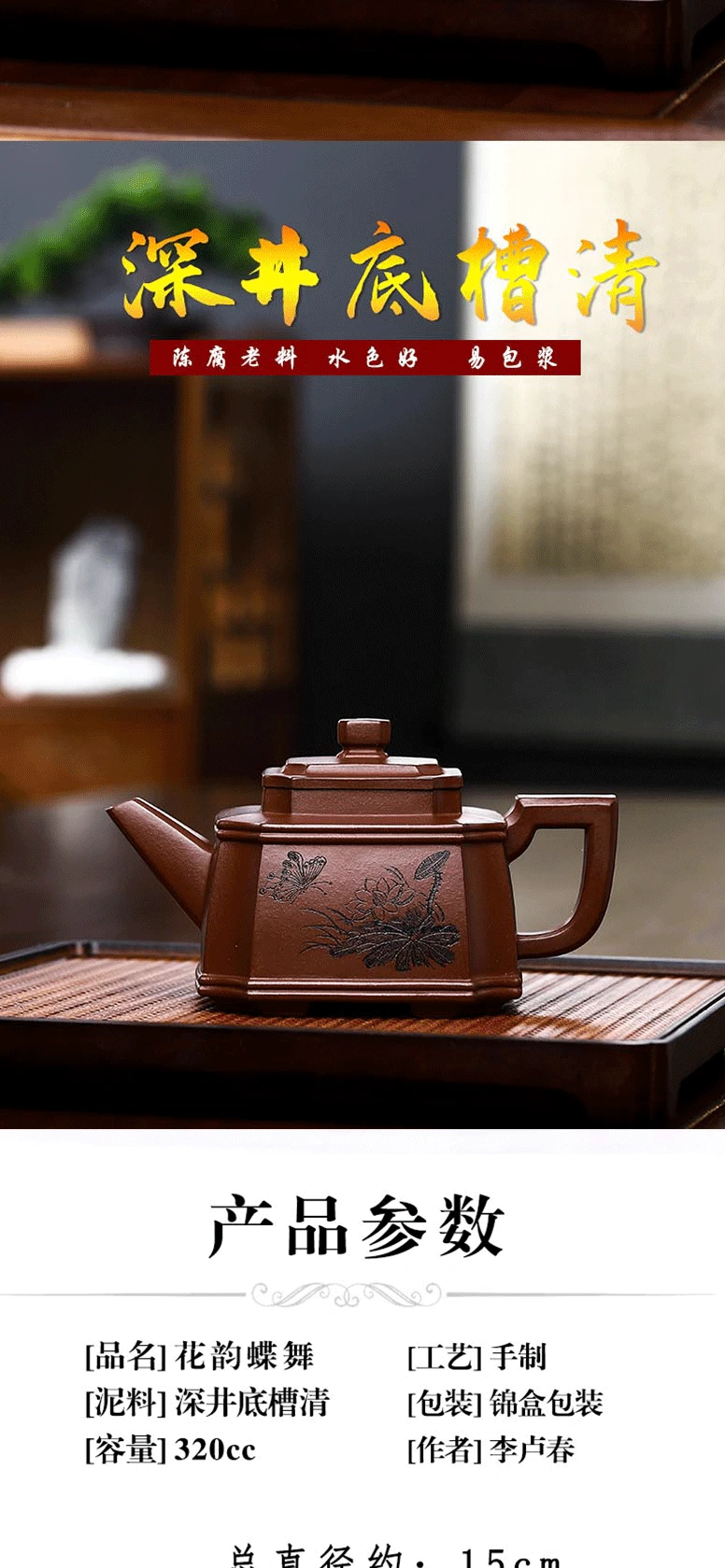 Yixing Purple Clay Pot Handmade Teapot Health Pot Flower Rhyme Butterfly Dance Collection Bottom Trough Clear Paste