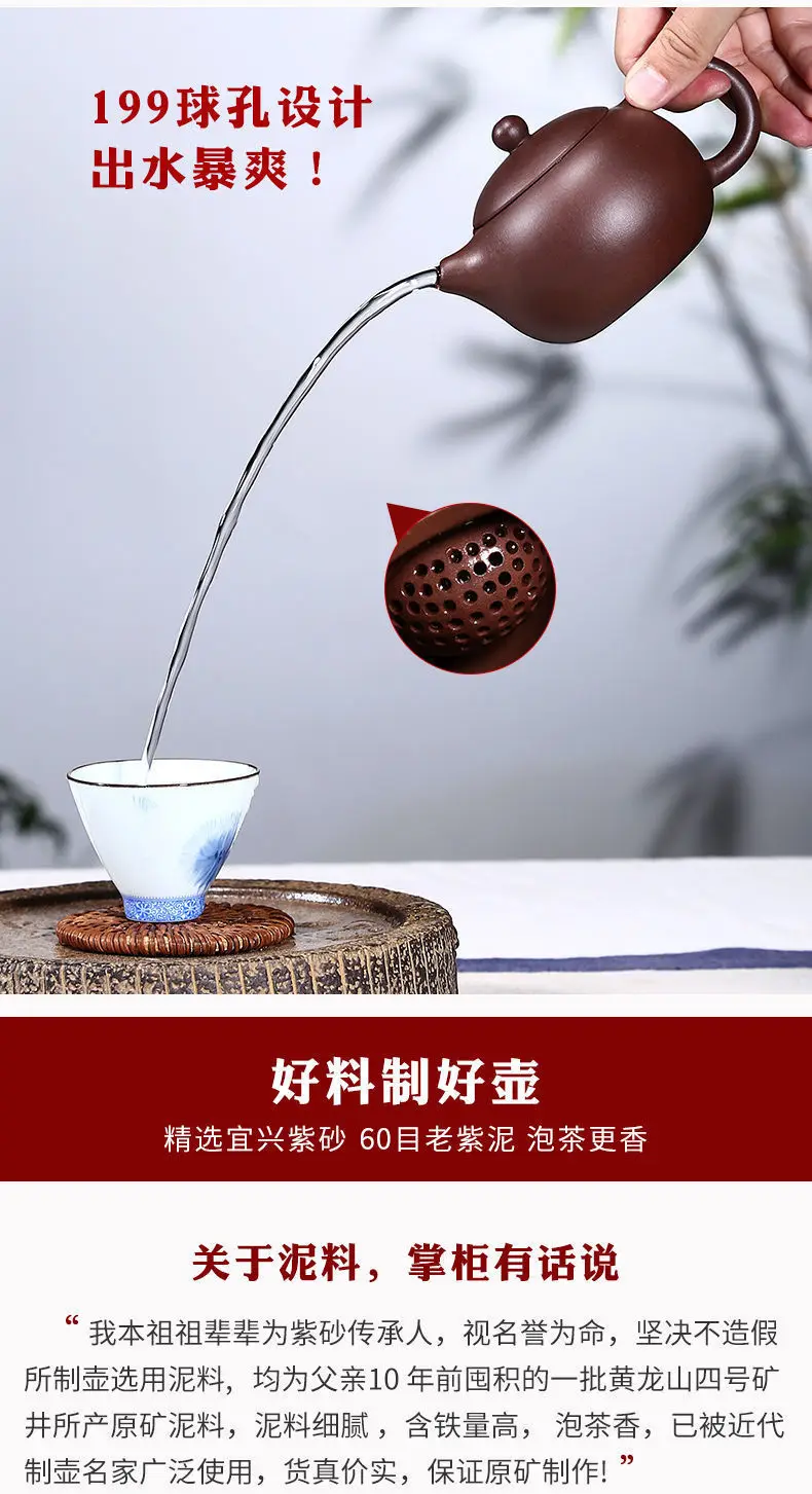Yixing Purple Clay Pot Handmade Xishi Pot Ball Hole Kong Fu Tea Set Household Teapot Drinkware Teaware For Drink Tea Green