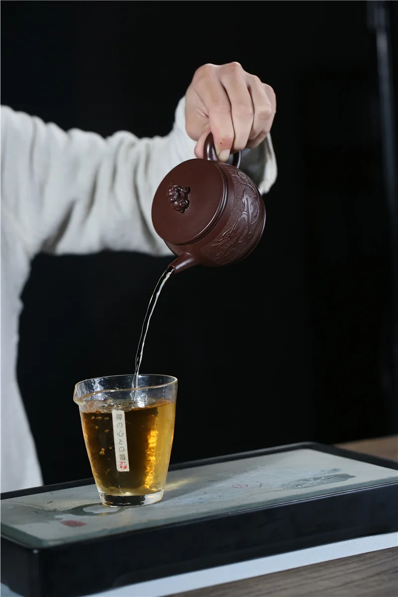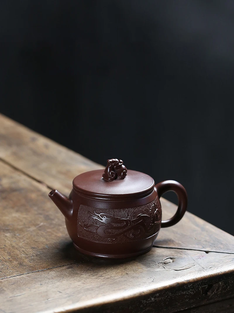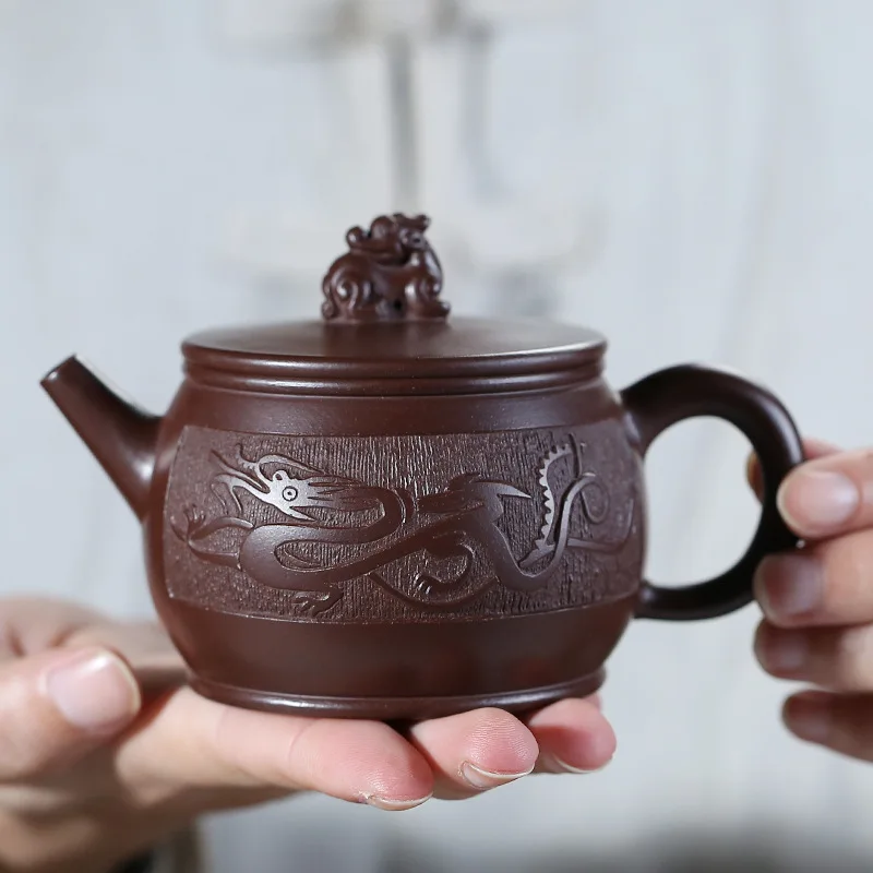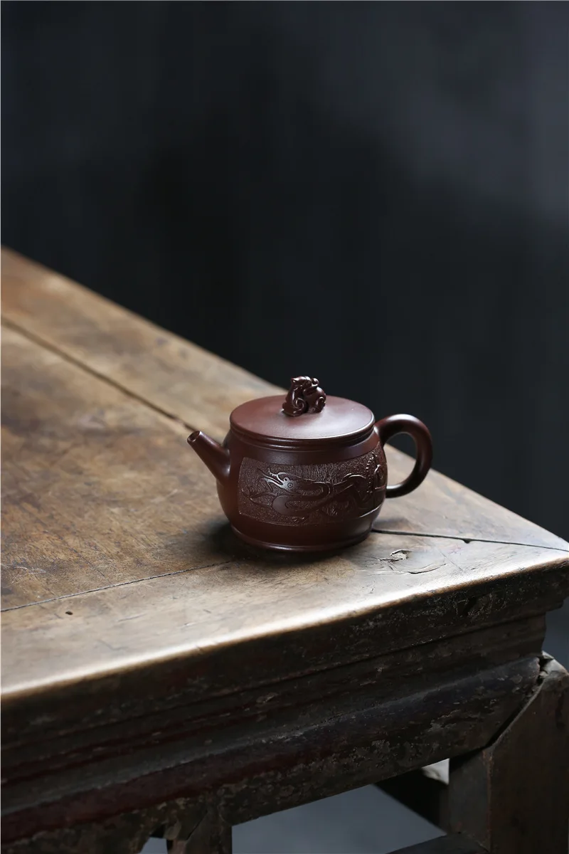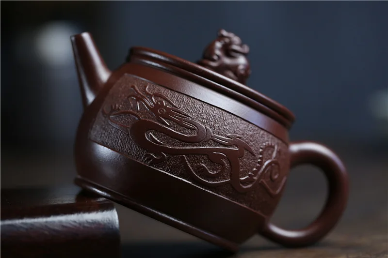 Yixing Purple Clay Teapot Hand-carved Dragon Teapot Purple Zhunilong World Teapot Kung Fu Tea Set Capacity 250ml