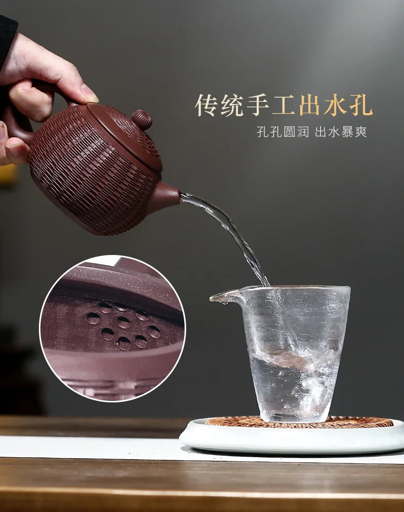 Yixing purple clay teapot is a pure handmade teapot with inner wall decorated with Kung Fu Tea