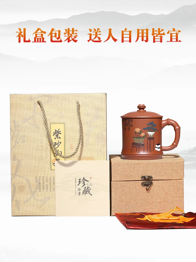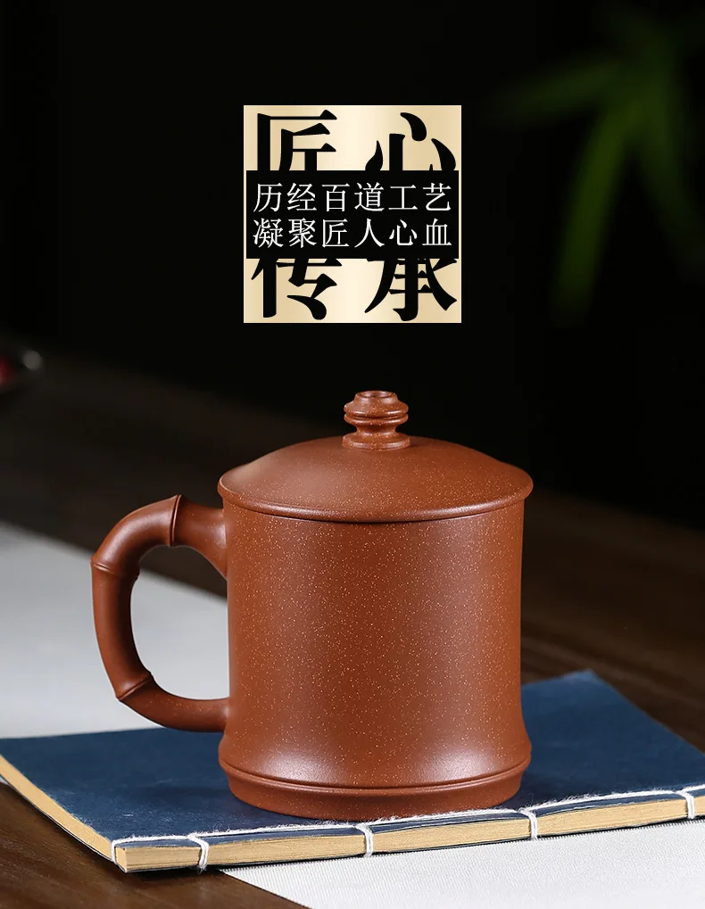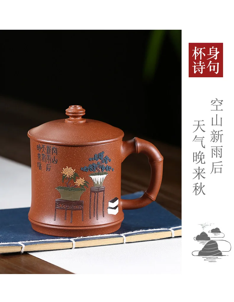 yixing purple sand cup of pure manual cup lid cup run of mine ore bamboo mud painting office cup cup carpet of flowers