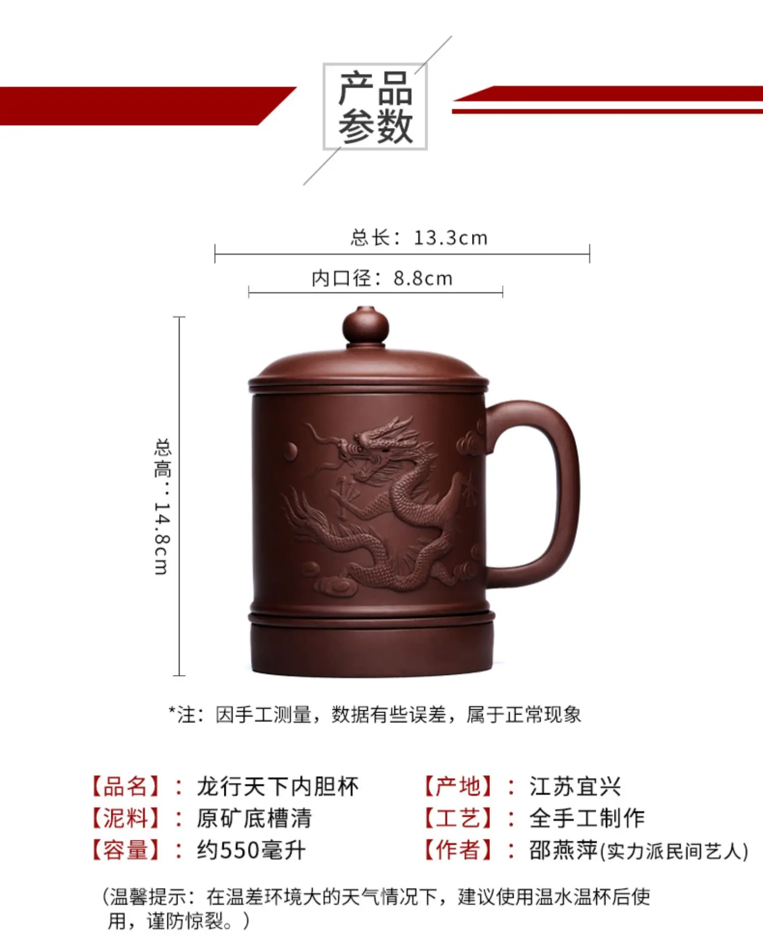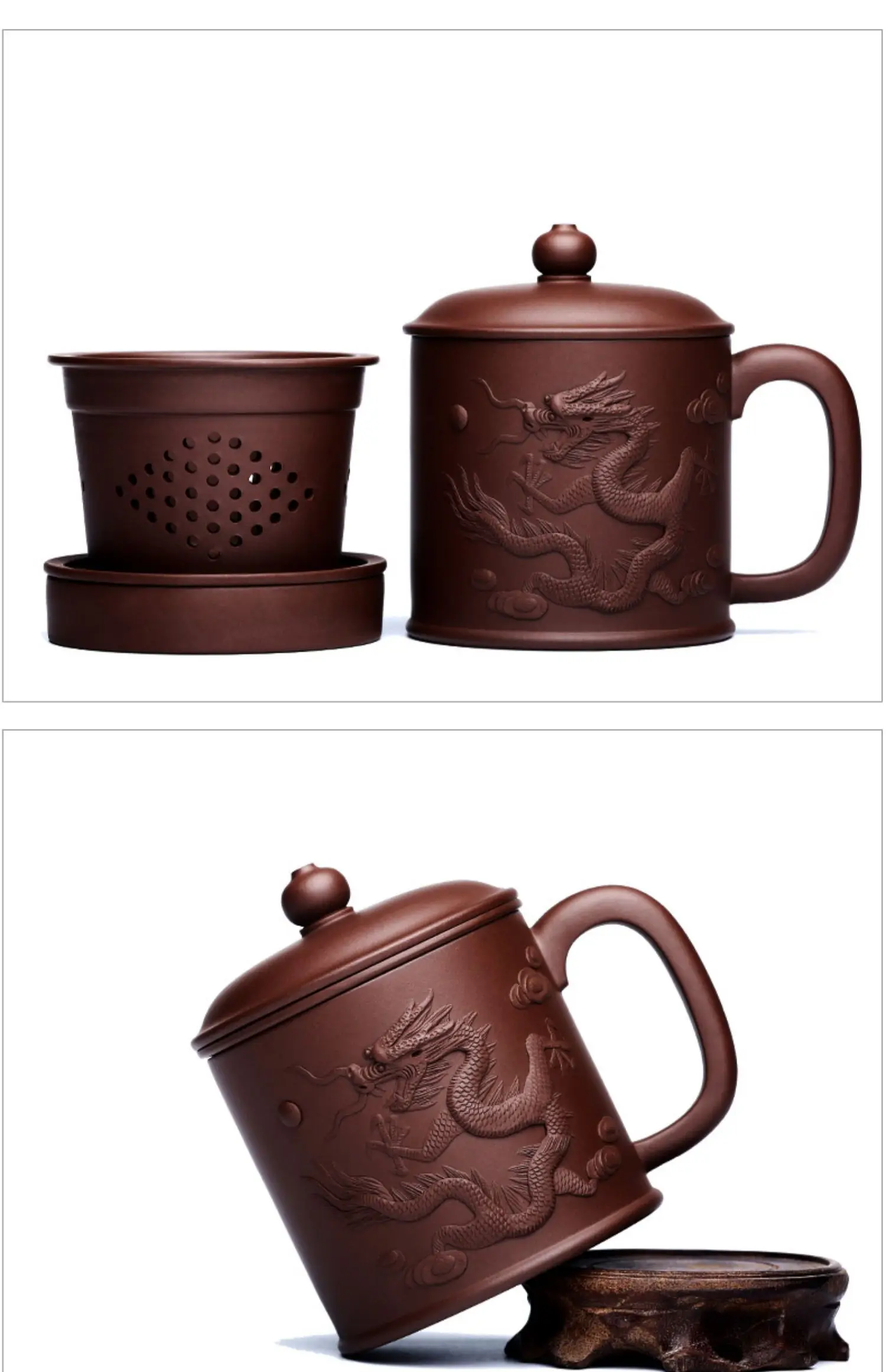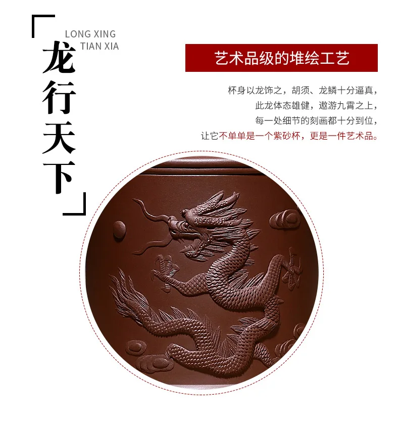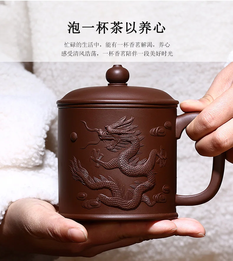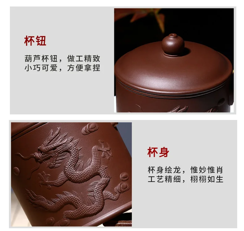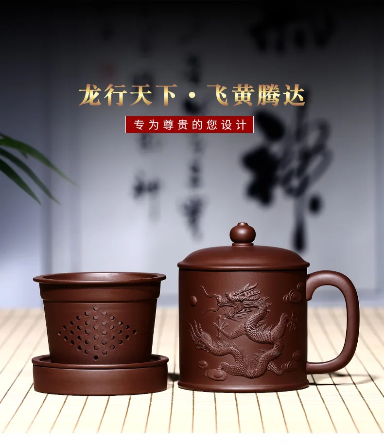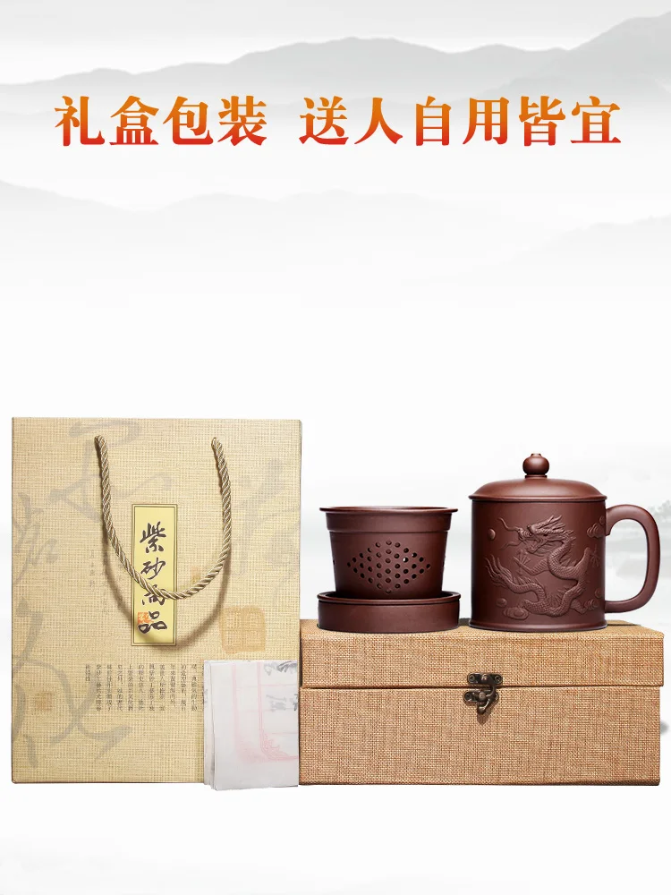 Yixing purple sand cup really pure manual tank filter tea office cup lid cup heap dragon custom lettering