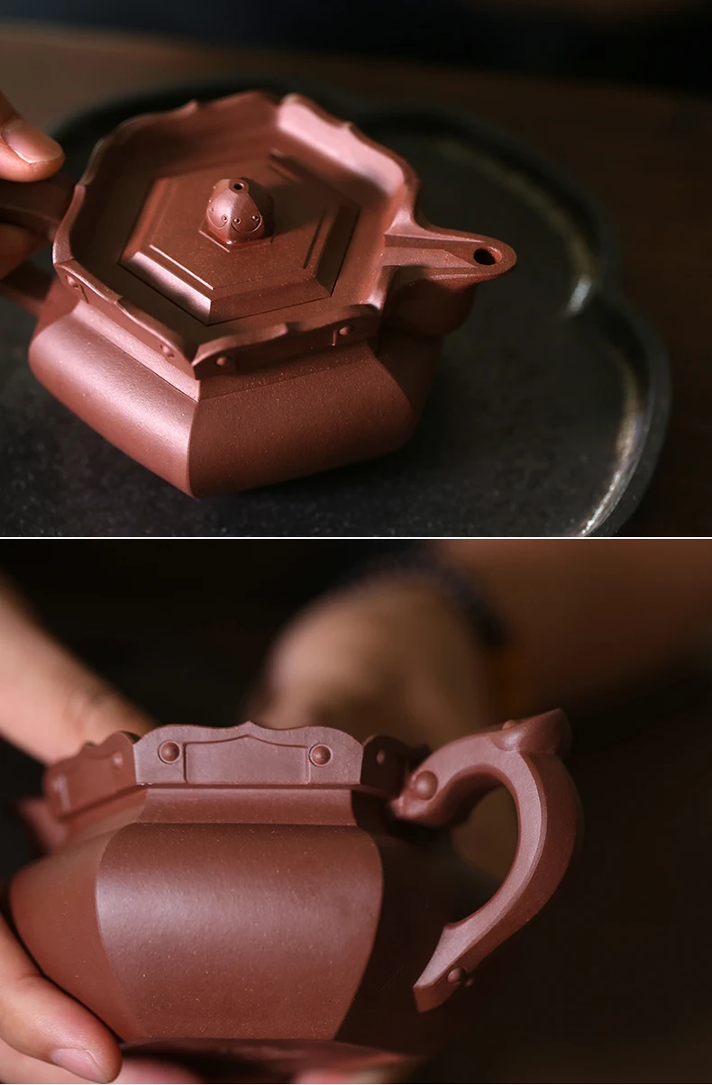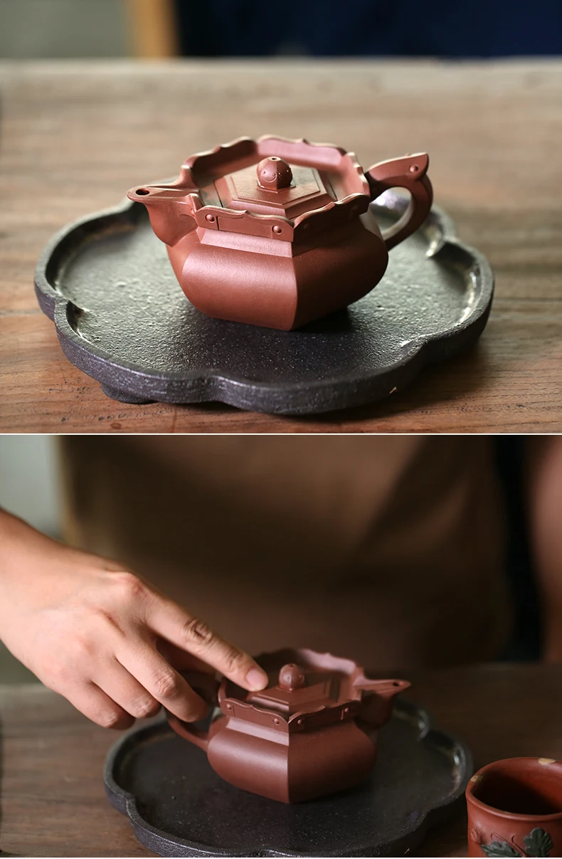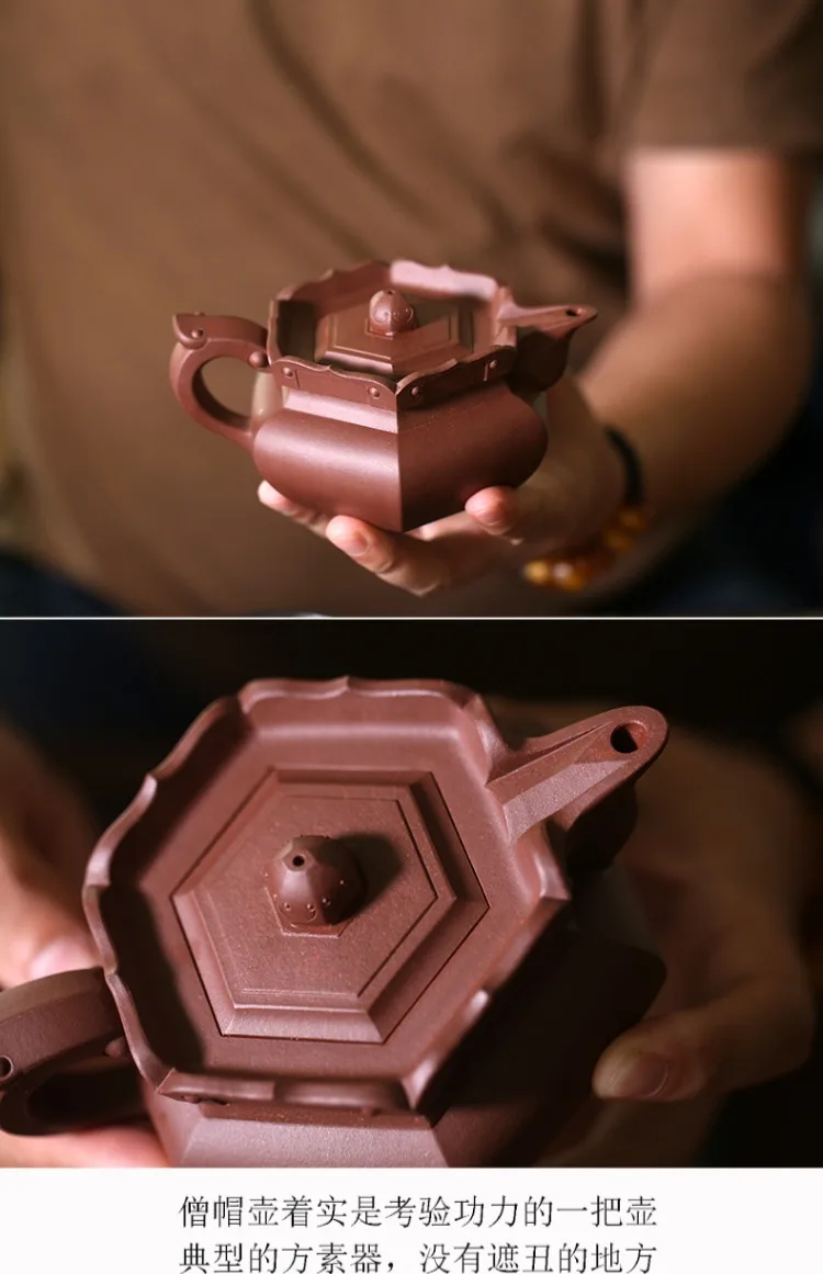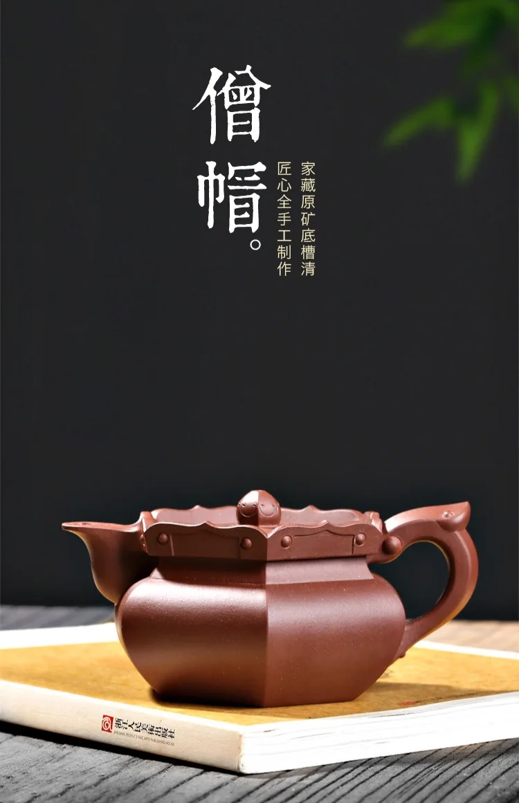 Yixing raw ore purple clay teapot pure handmade tea set Kungfu teapot bottom groove green monk hat teapot 230cc