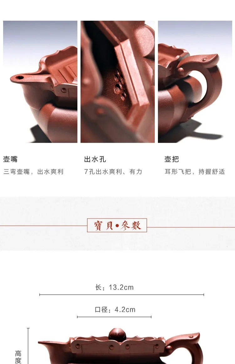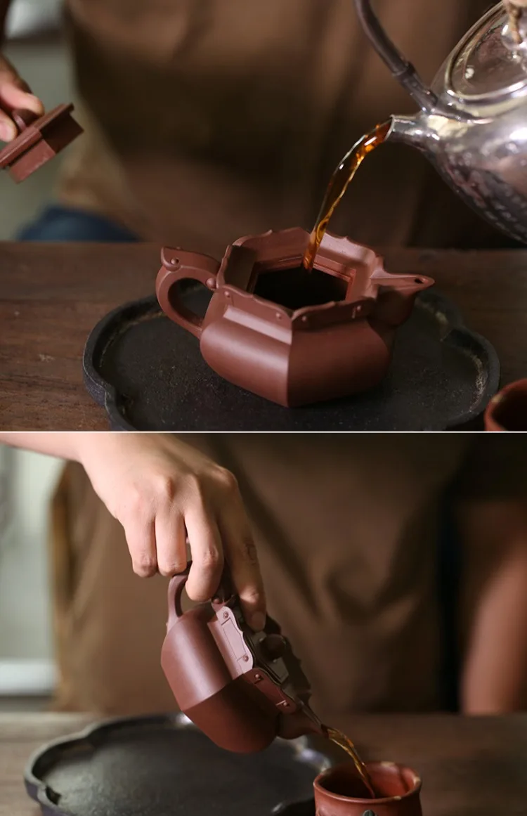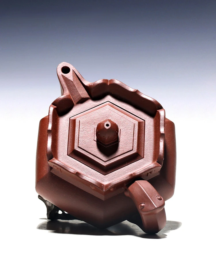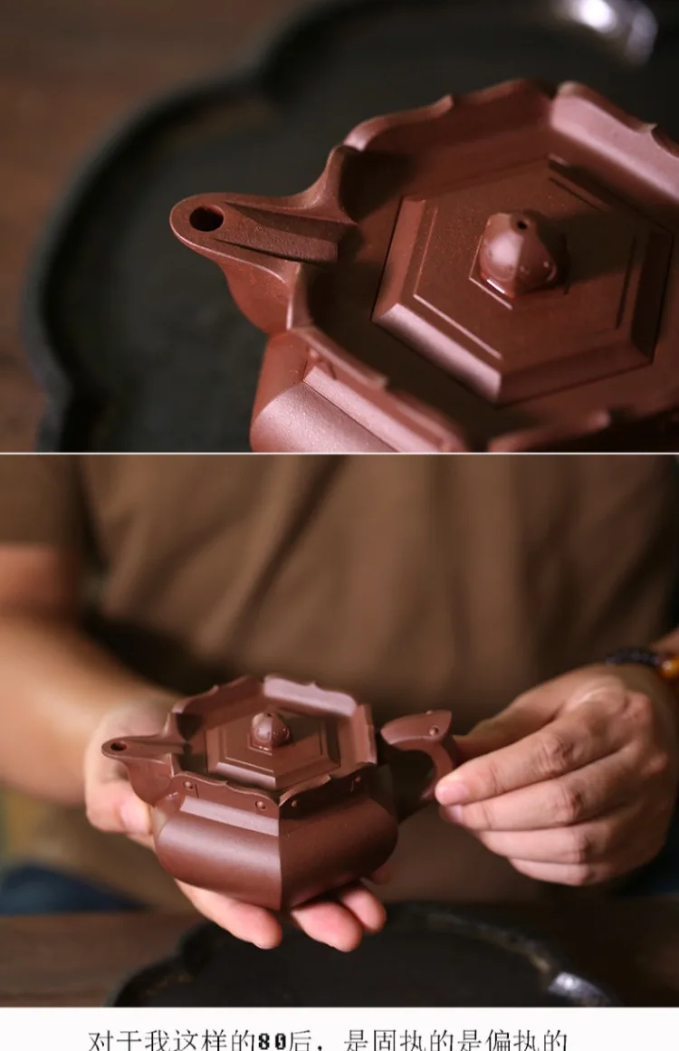 Yixing raw ore purple clay teapot pure handmade tea set Kungfu teapot bottom groove green monk hat teapot 230cc