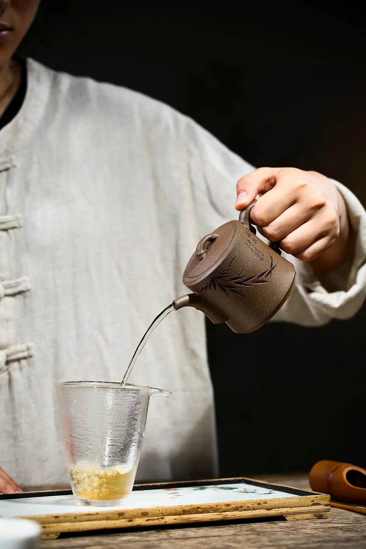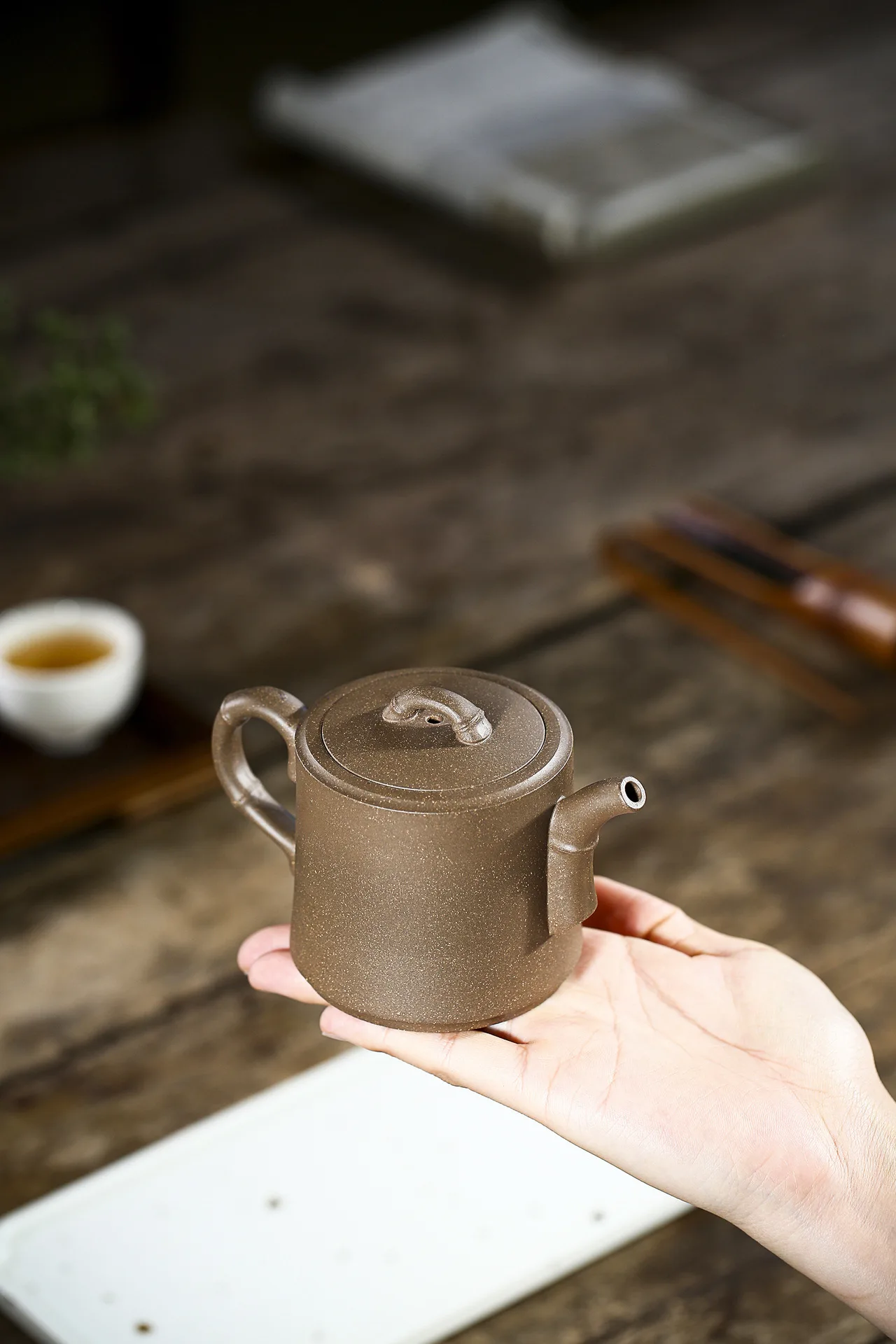 [Work introduction] The work has deep connotation, elegance, craftsmanship, and complete use. It is deeply loved by collectors and purple sand lovers at home and abroad. [Features of the clay] The sand is heavy and resembles a peasant farmer. It is used for a long time and gradually reveals its edge. The cultivation has changed a lot, and it is gentle and solemn. The lines are beautiful and natural, the mouth handles are coordinated, and the body barrel is matched with a slender handle, which is more elegant and noble.