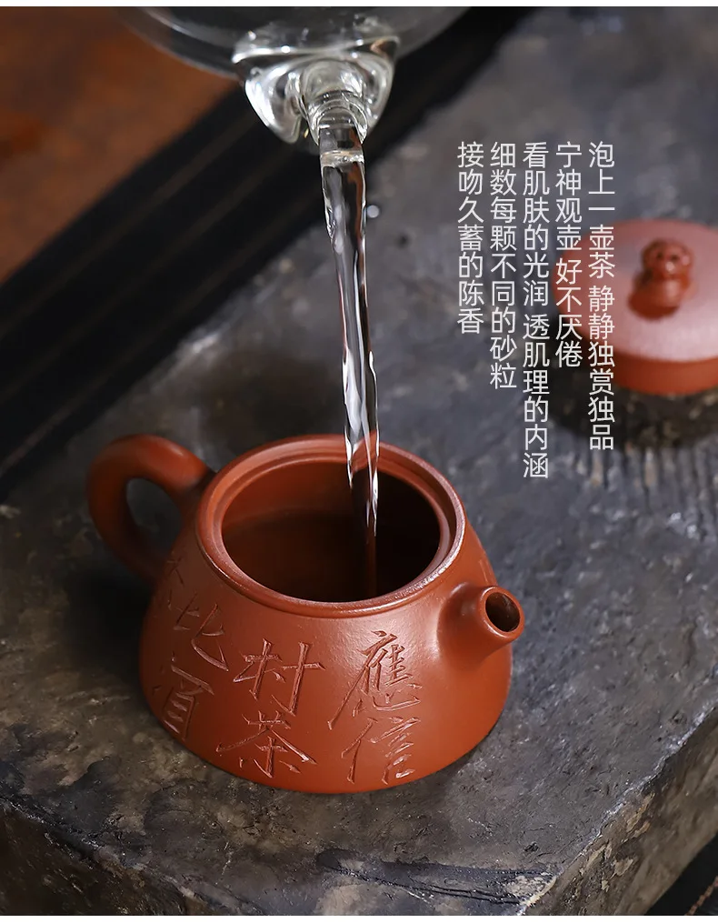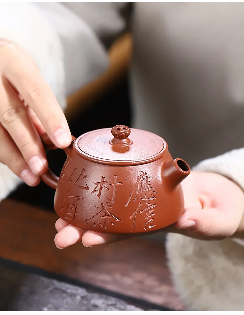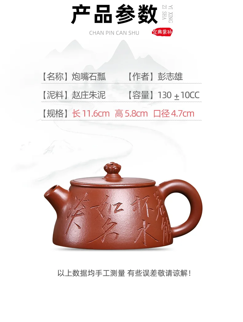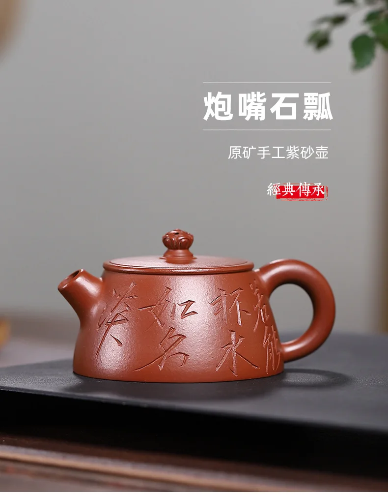Yixing teapot vermilion stone ladle pot full handmade purple sand tea set custom gift wine set to drink white tea Chinese teapot 130ml
