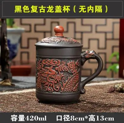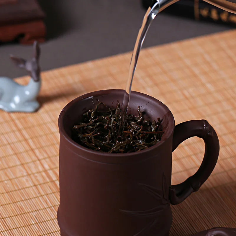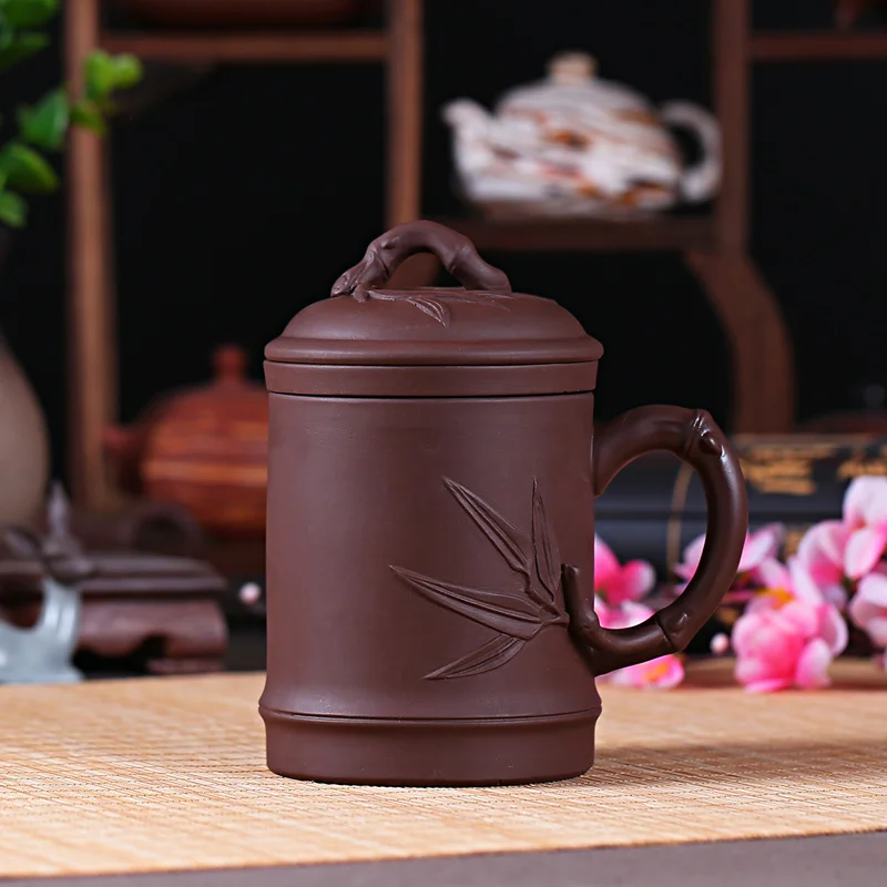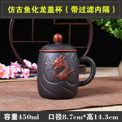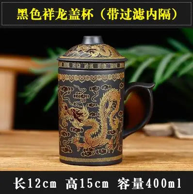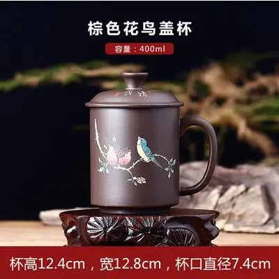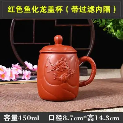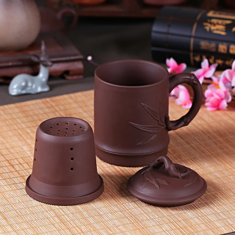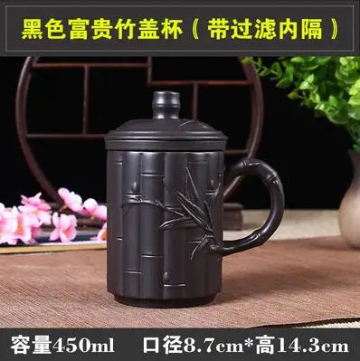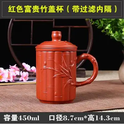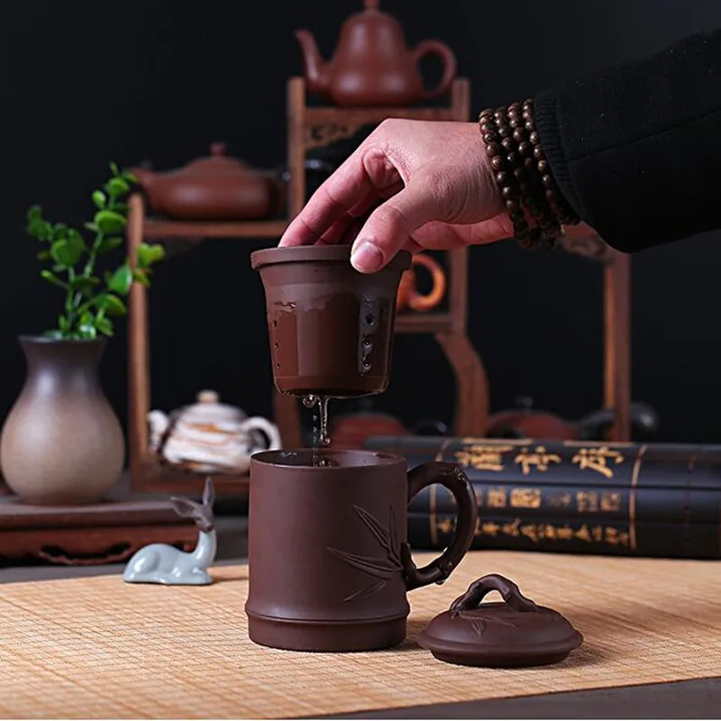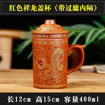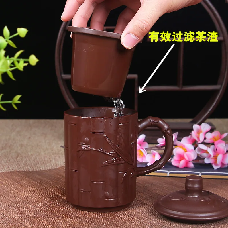 Yixing Zisha Ceramic Water Cup with Cover, Pure Handmade Tea Cup, Liner Filter, Office Kungfu Tea Set