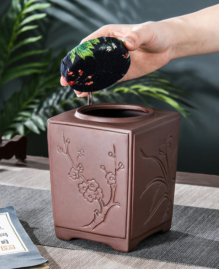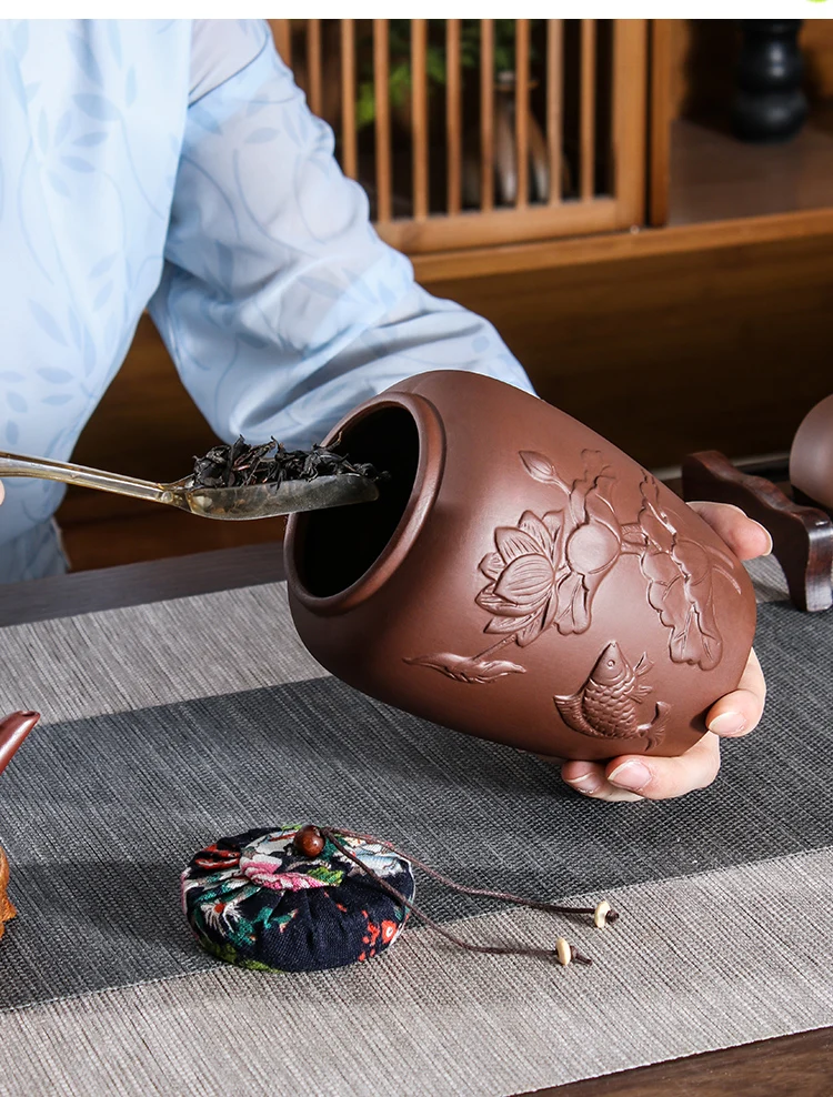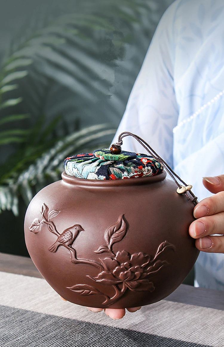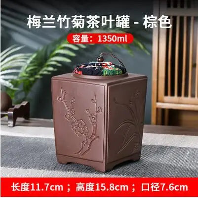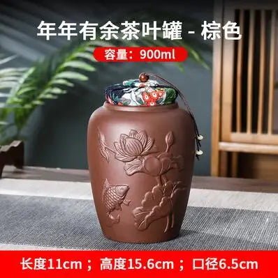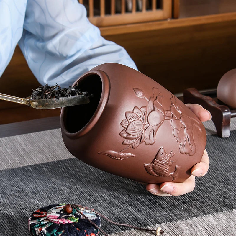 Yixing-Zisha Chinese-style Tea Caddy, Large Hand-Sealed Tea Storage Pot, Moisture-Proof Pu'er Tea Canister