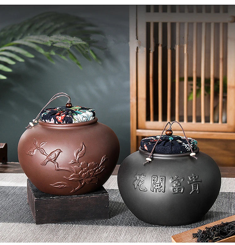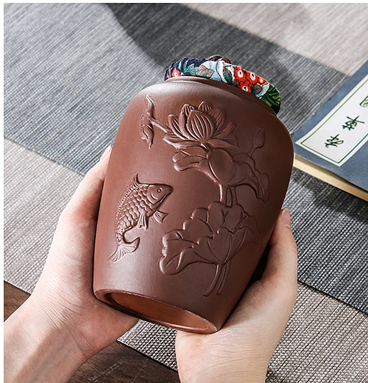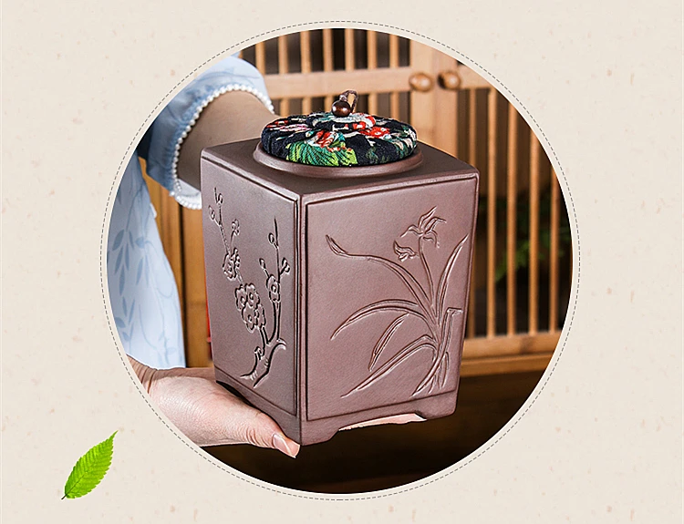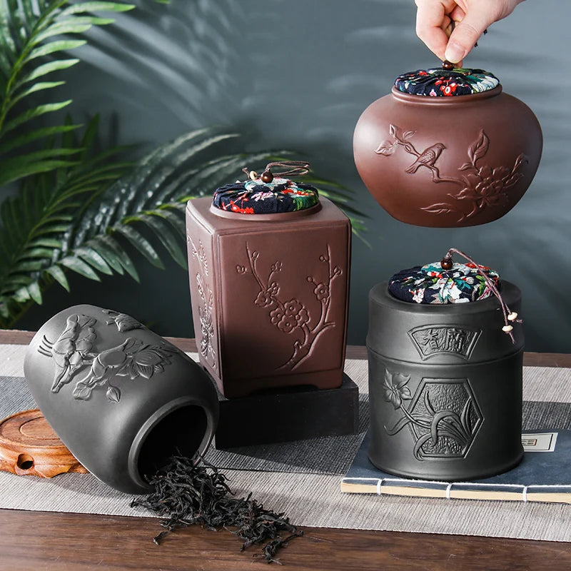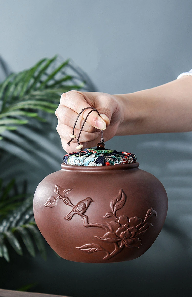 Yixing-Zisha Chinese-style Tea Caddy, Large Hand-Sealed Tea Storage Pot, Moisture-Proof Pu'er Tea Canister
