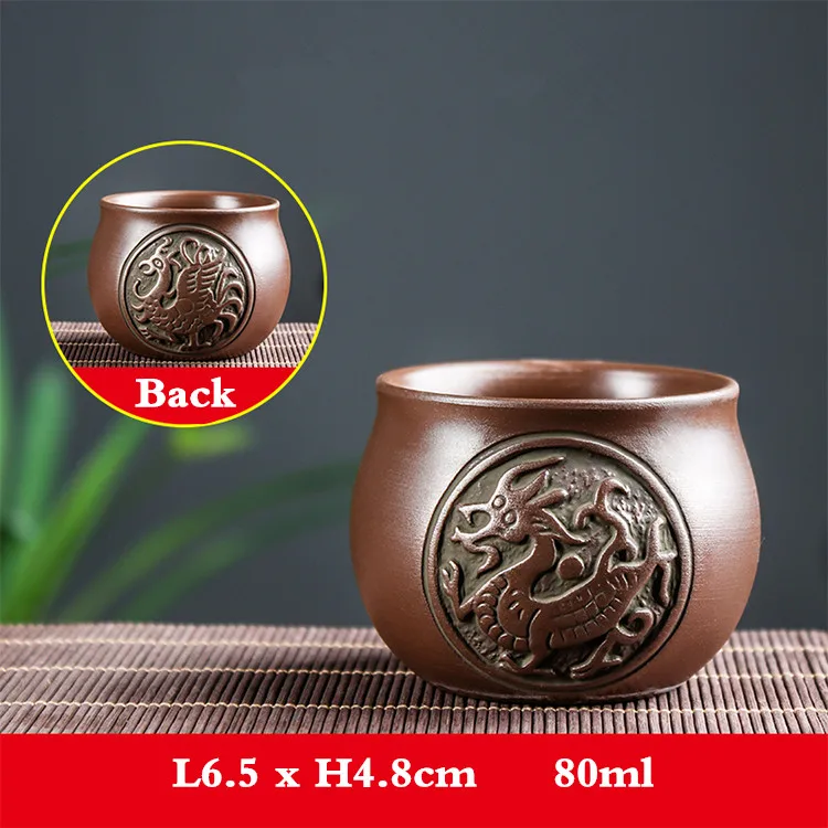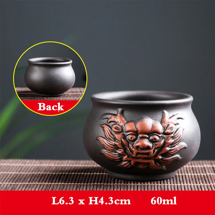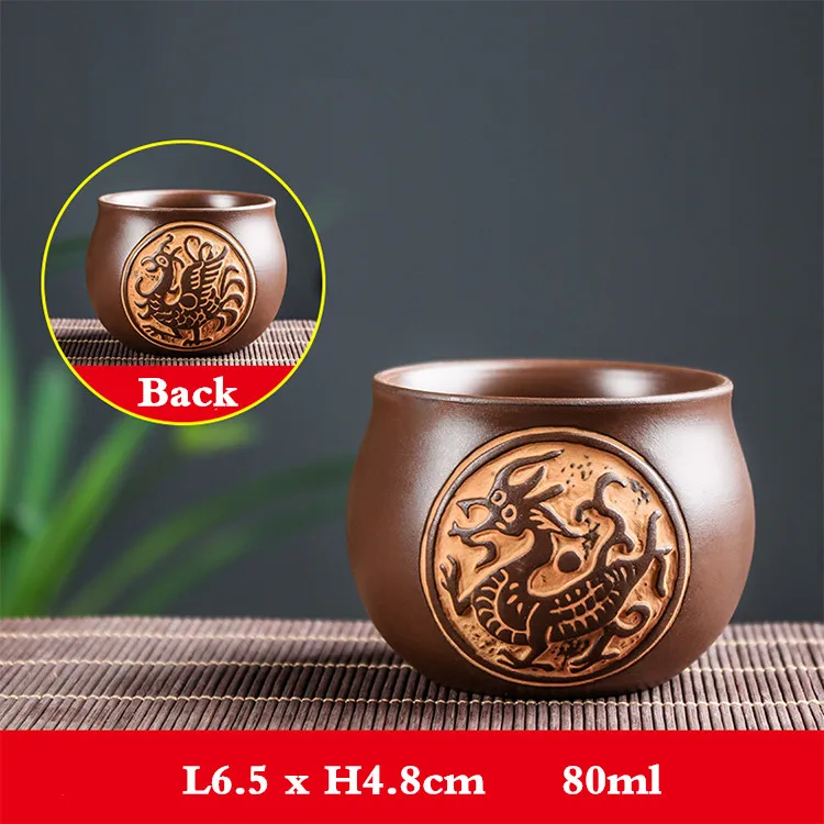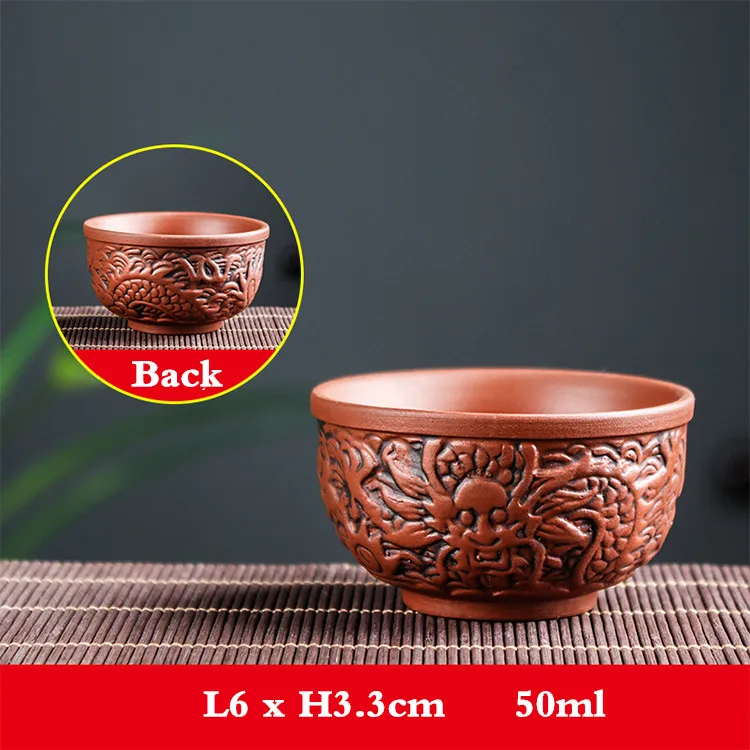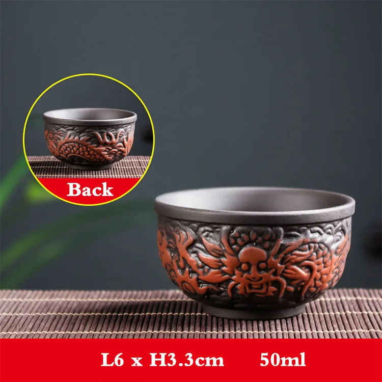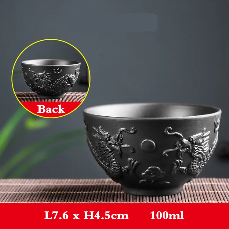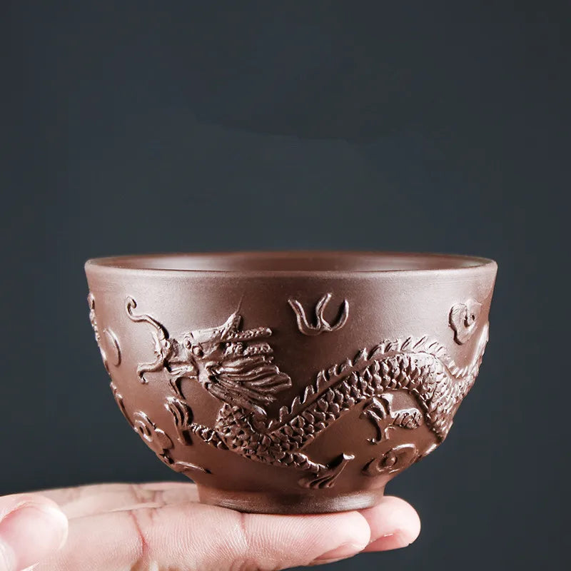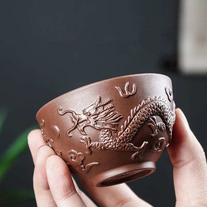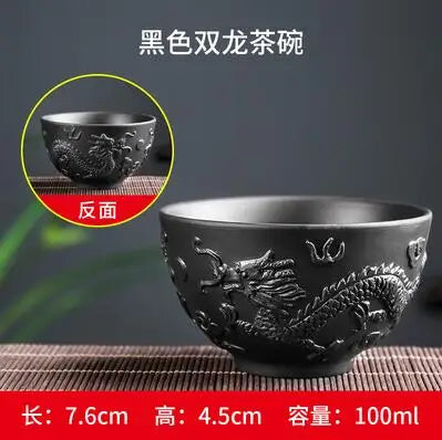 Yixing Zisha Double Dragon Tea Bowl, Large Handmade Relief, Phoenix Tea Cup, Master Cup, Tea Accessories, 3Pcs