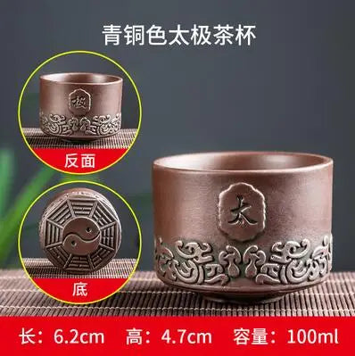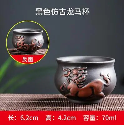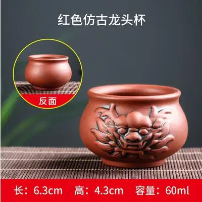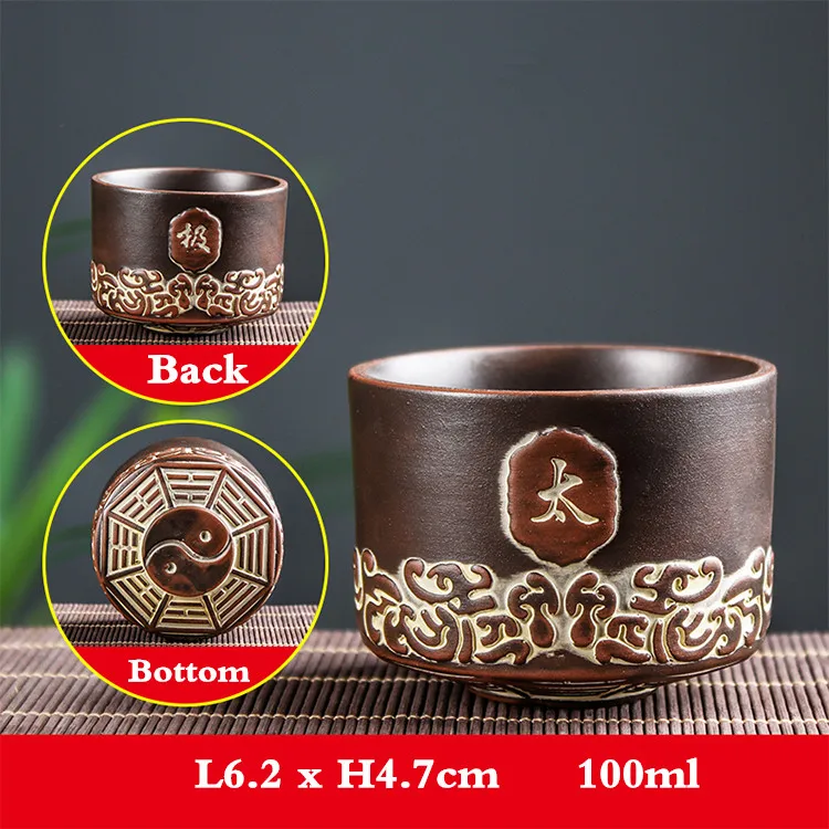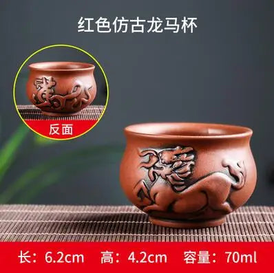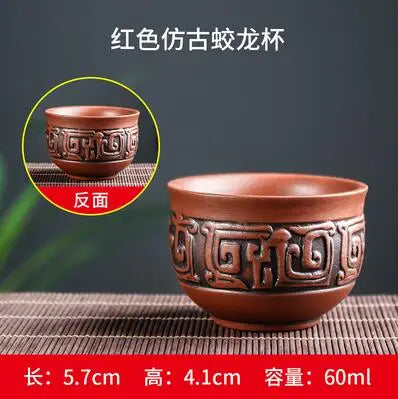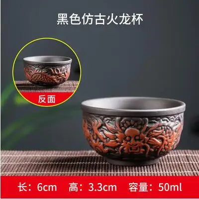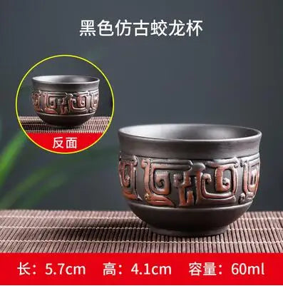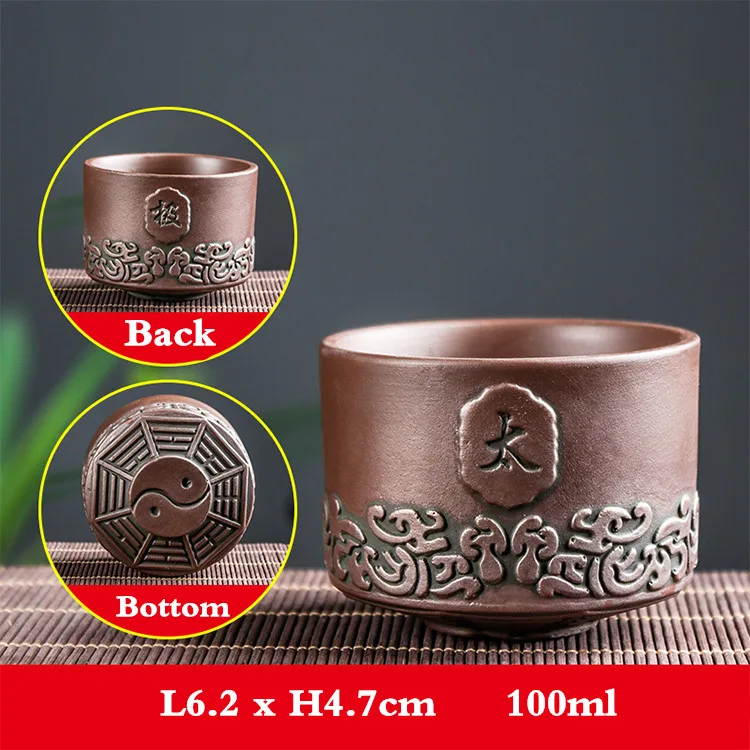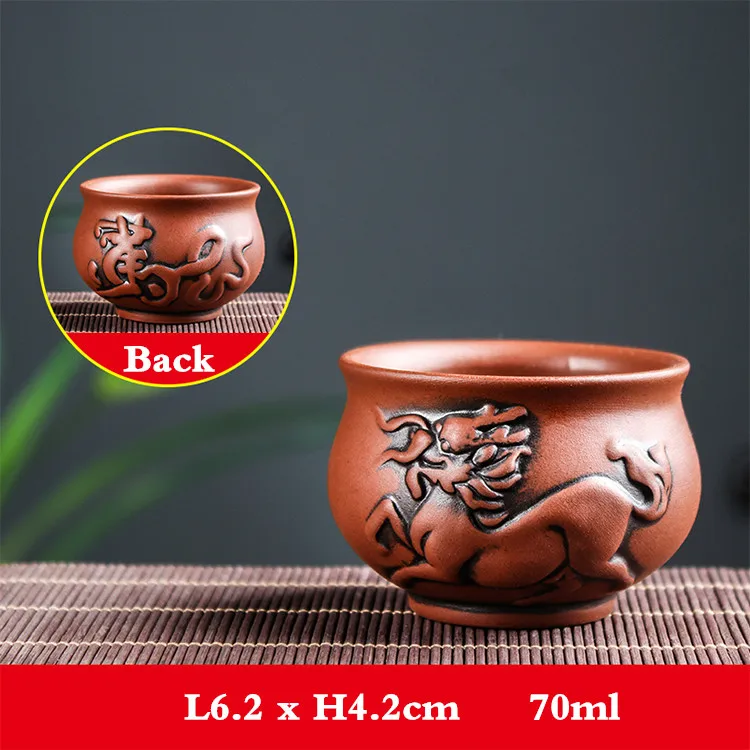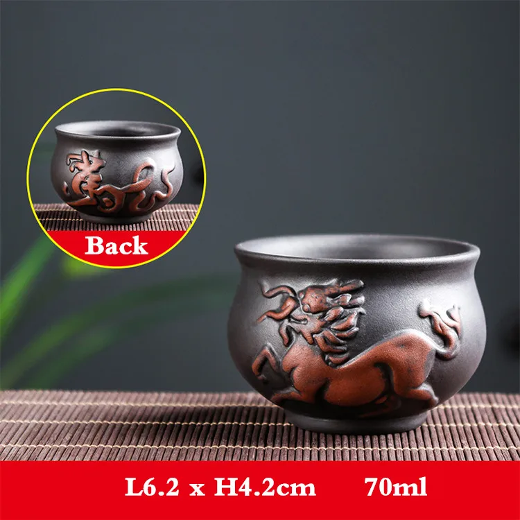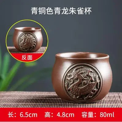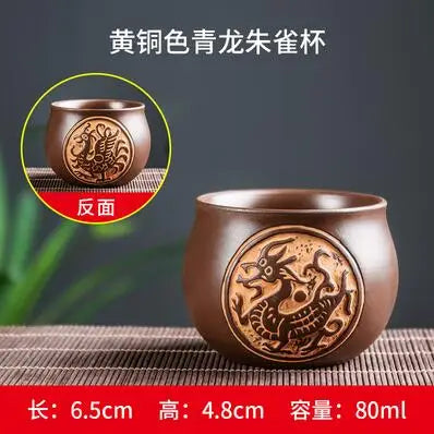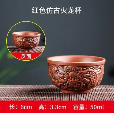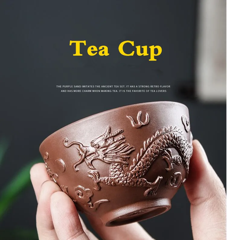 Yixing Zisha Double Dragon Tea Bowl, Large Handmade Relief, Phoenix Tea Cup, Master Cup, Tea Accessories, 3Pcs