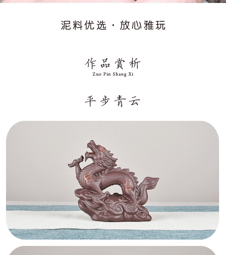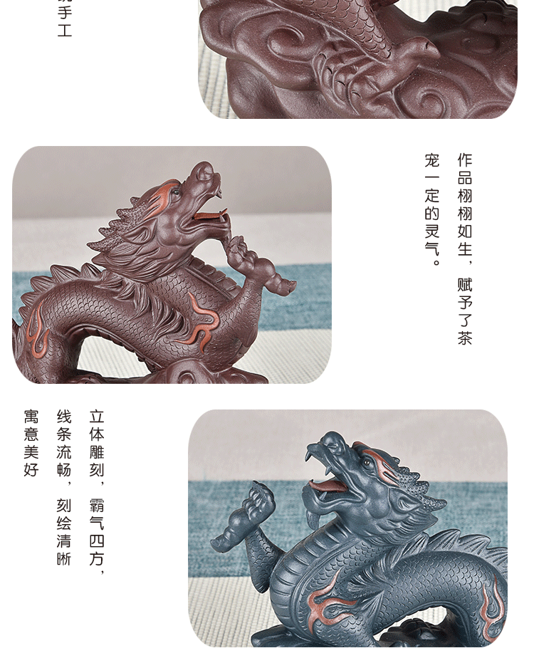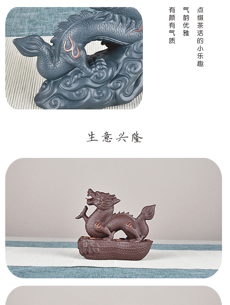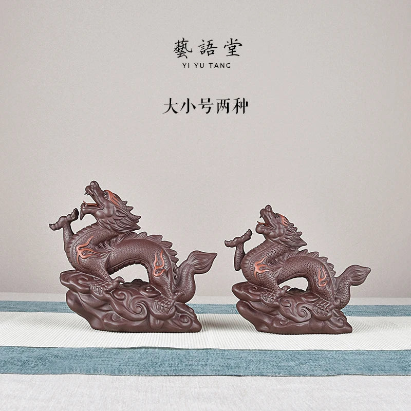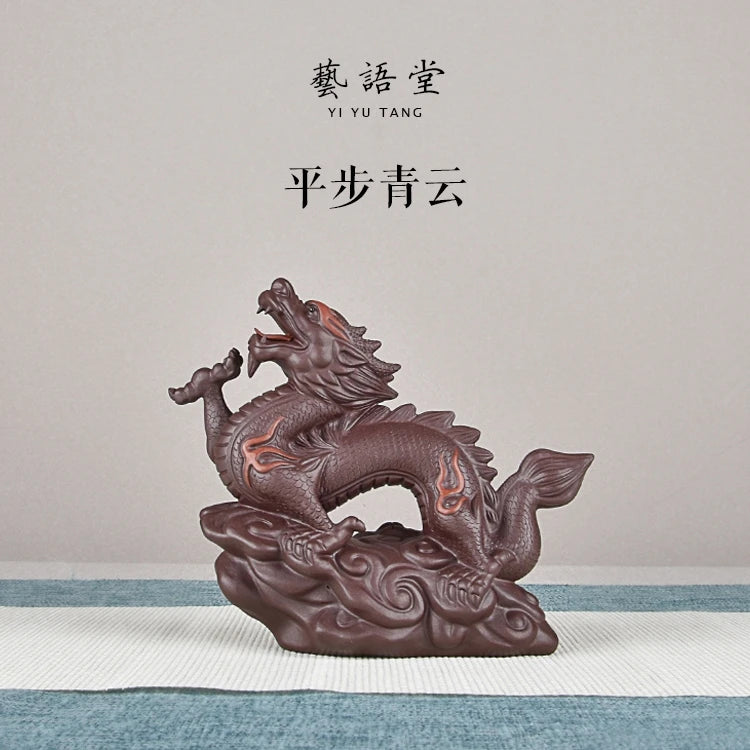 Yiyutang Yixing Fine Zisha Zodiac Dragon Business Booming Tea Ornaments Supportable Handmade Tea Tray Utensils