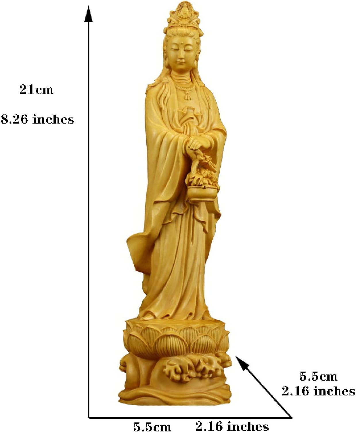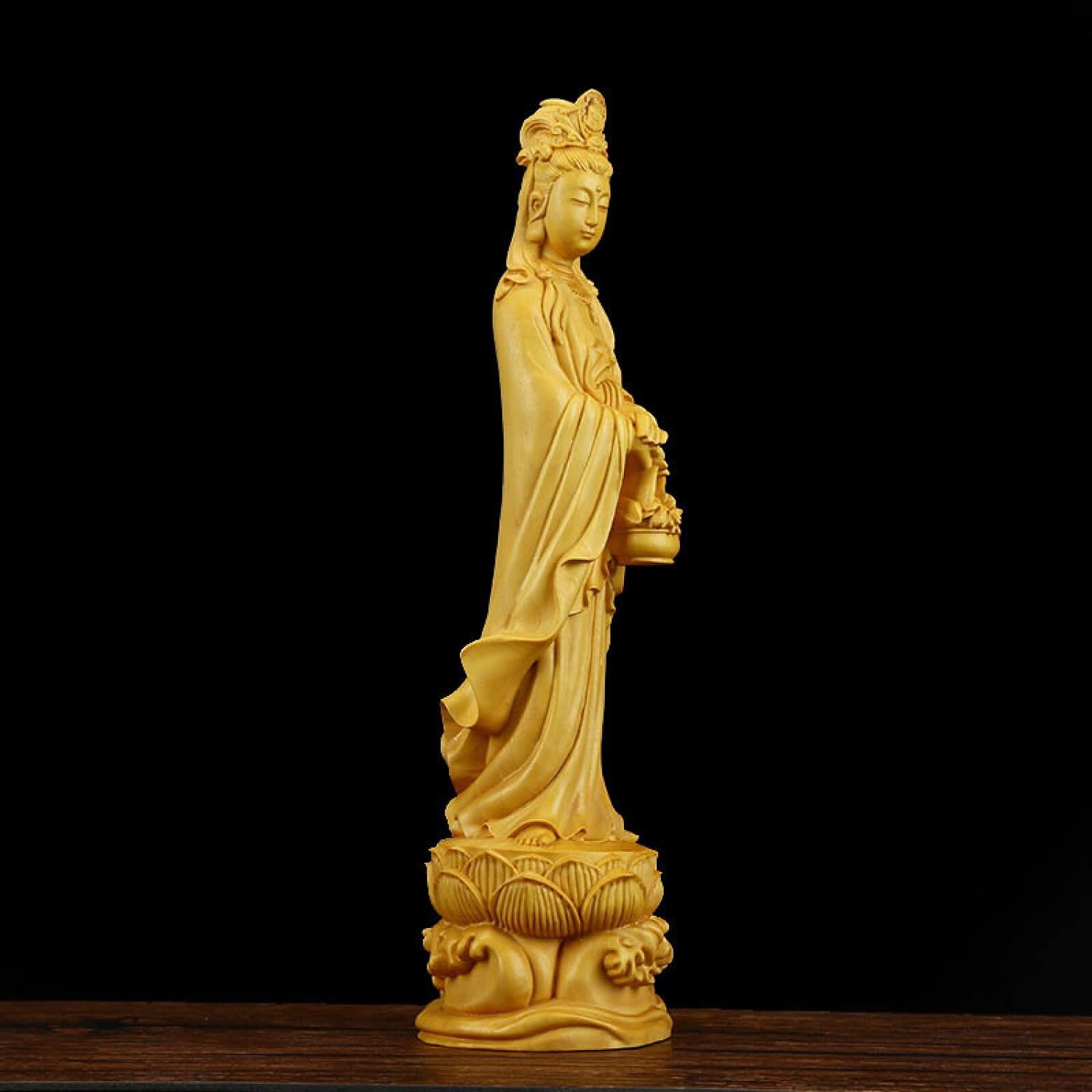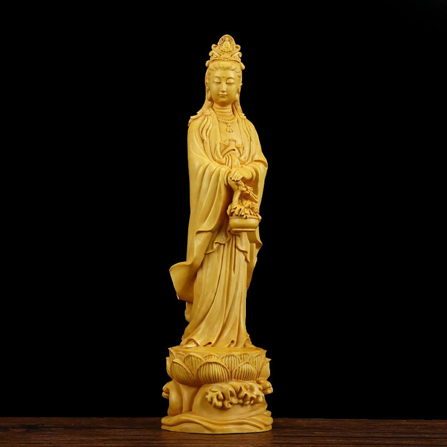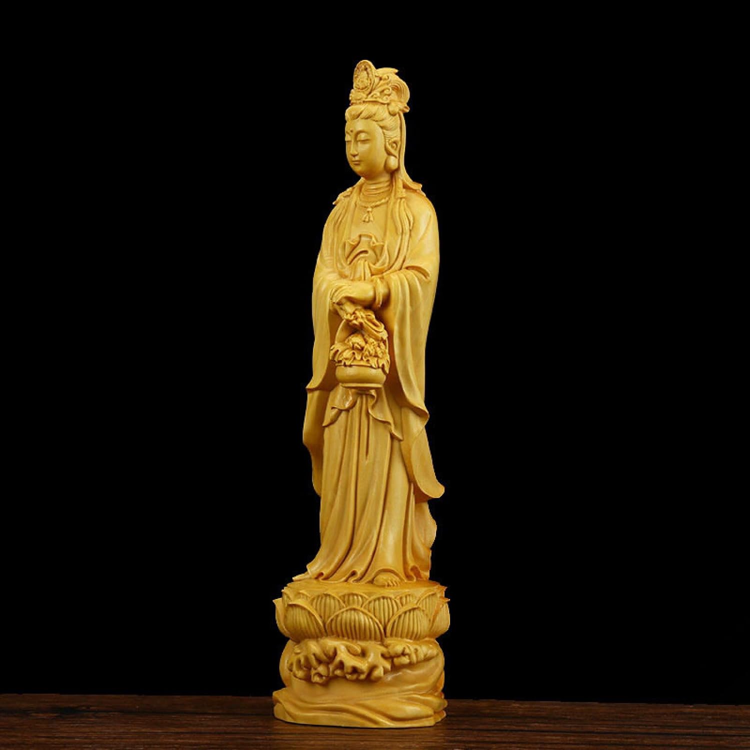 YQLKD Statue Sculpture Flower Basket Guanyin Solid Wood Statue Carving Buddha Statue Decoration