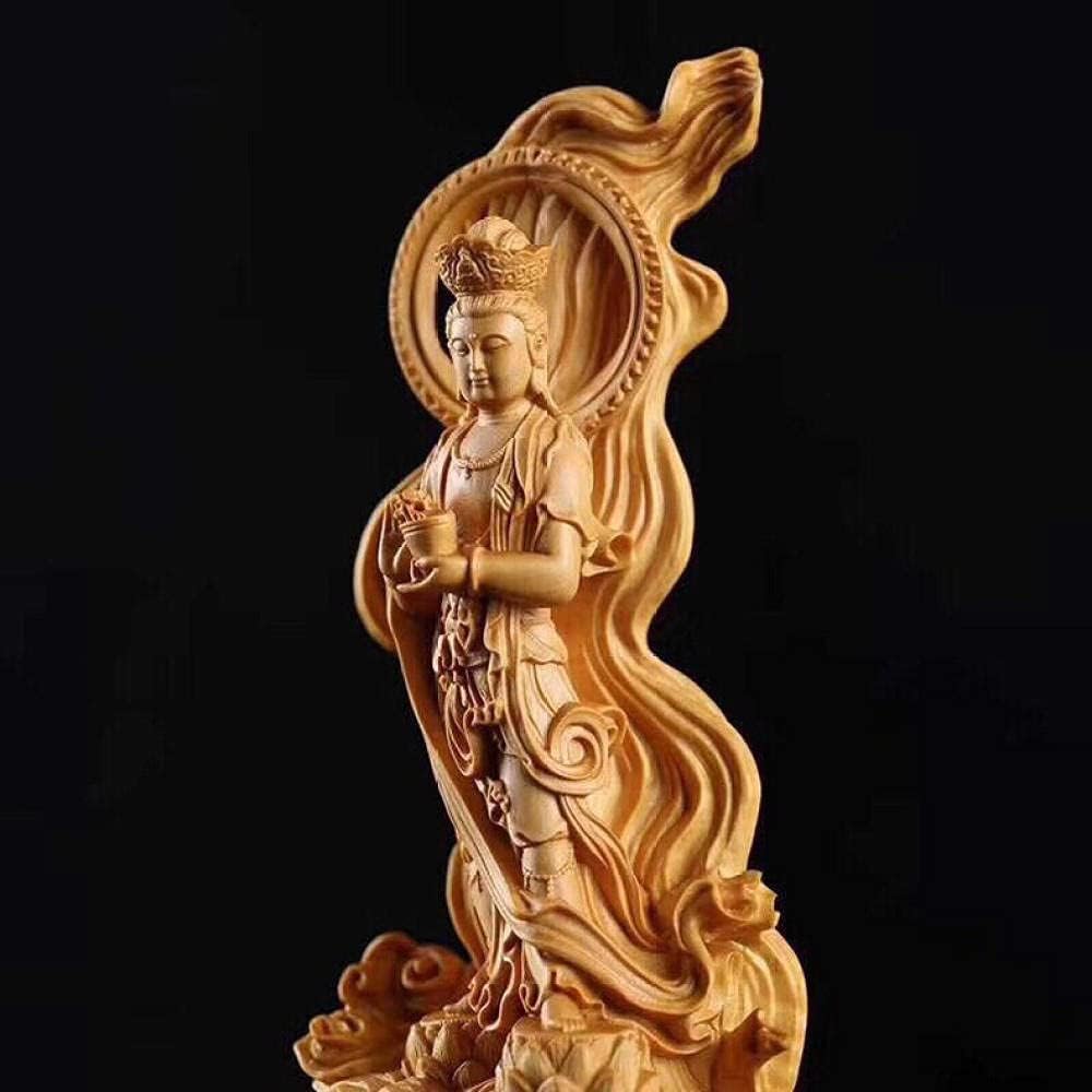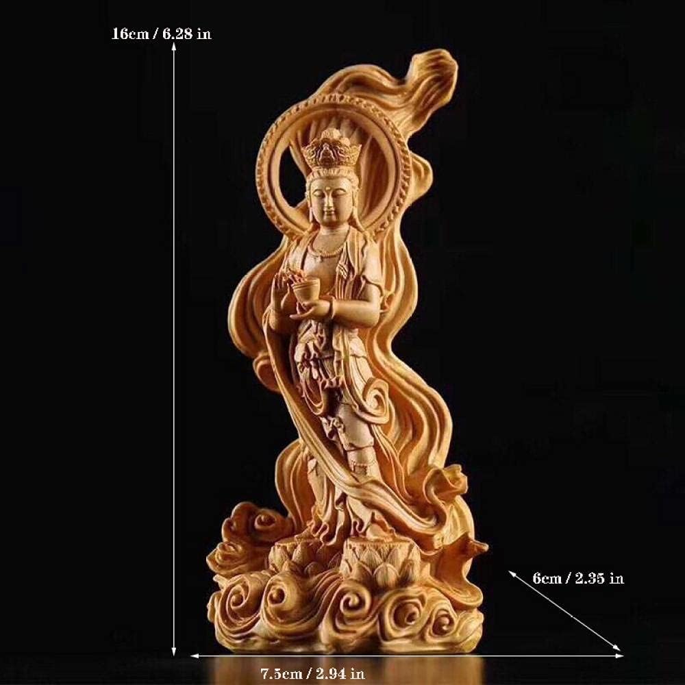 YQLKD Statue Simple Solid Wood Cypress Guanyin Statue Buddha Statue Hand-Carved Decoration