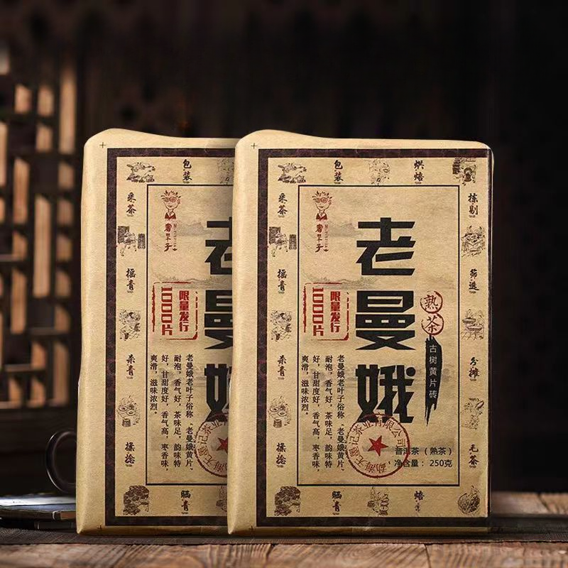 Yunnan Cooked Pu'er Tea Laomane Puerh Ripe Tea Brick Aged Pu-erh Black Tea 250g