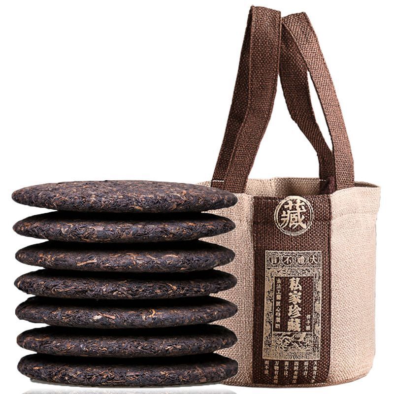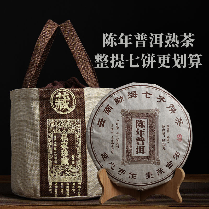 Yunnan Pu'er Tea Ripe Tea 357g Qizi Cake Tea Aged Menghai Tea Black Tea Cake