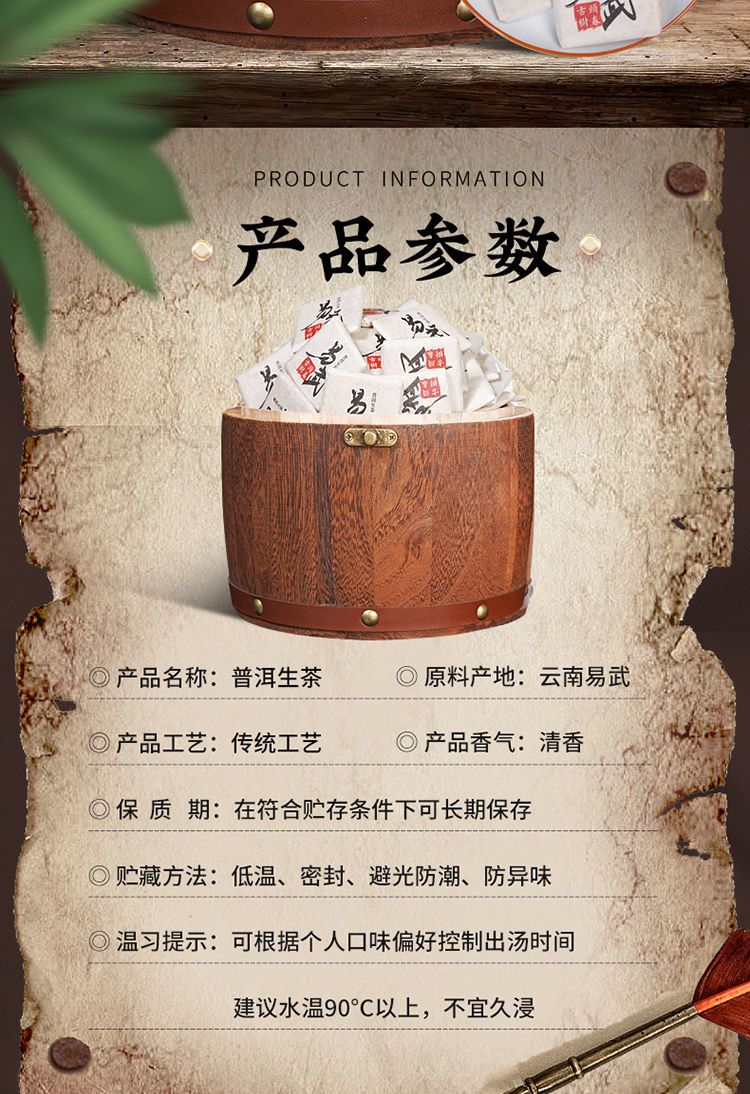 City:Xishuangbanna Dai Autonomous Prefecture Packing:Gift box Net content:250g Shape:Mini Tuocha Process:Raw Tea Shelf life:8888 days Storage year:3 years (including)-5 years (excluding) Tea region:Yiwu tea region |