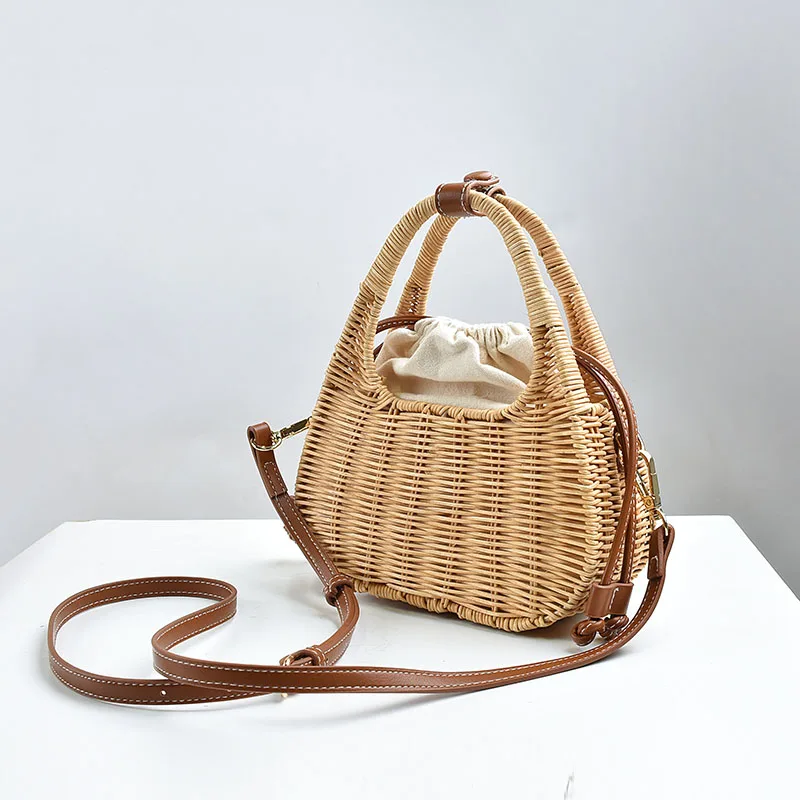 z2022a new small shoulder bag straw bag retro rattan bag new women's bag rattan braided portable messenger bag