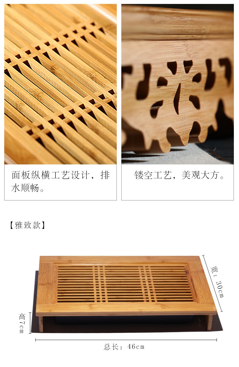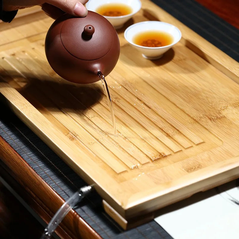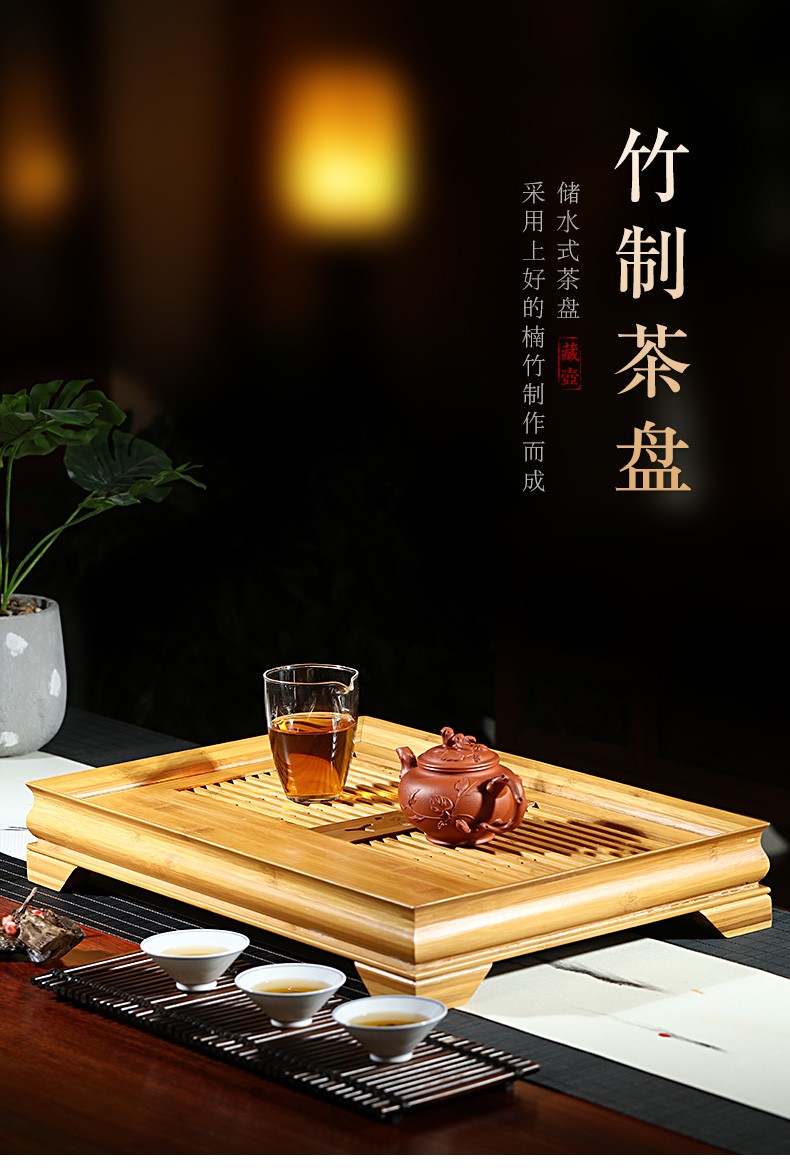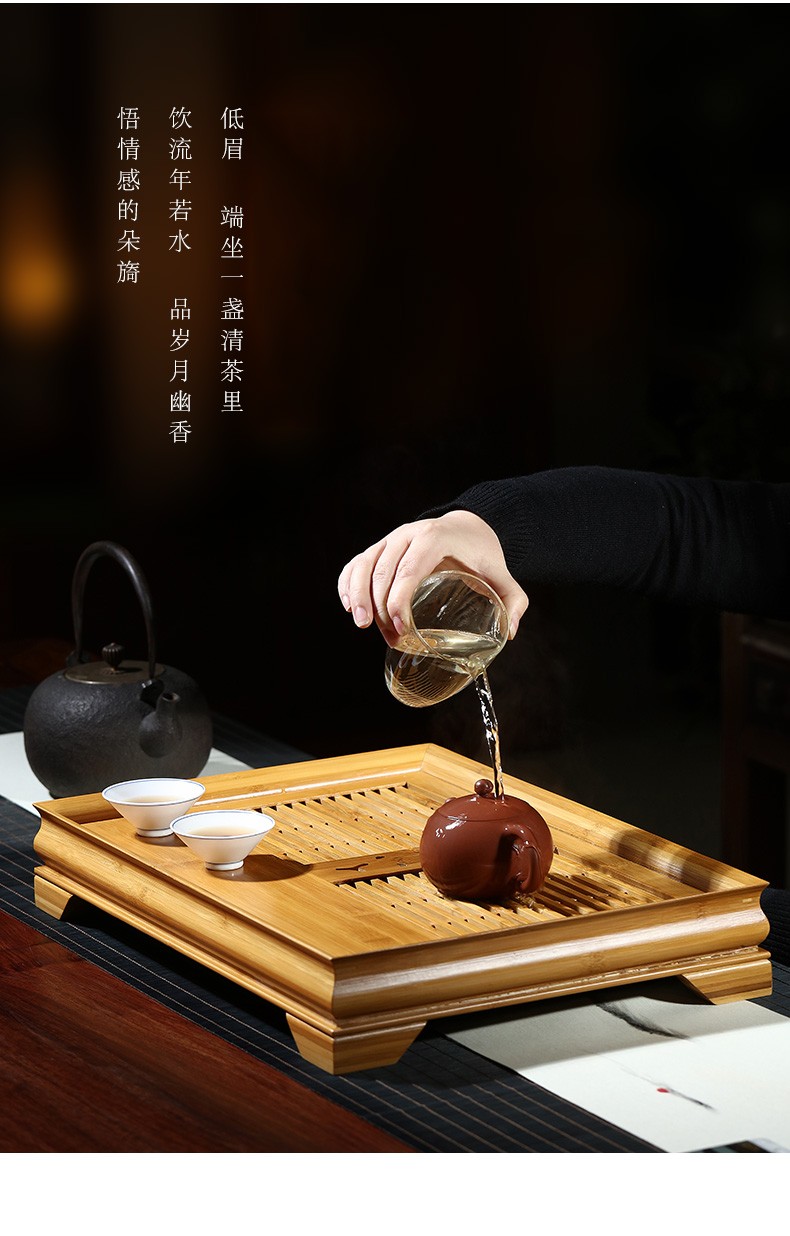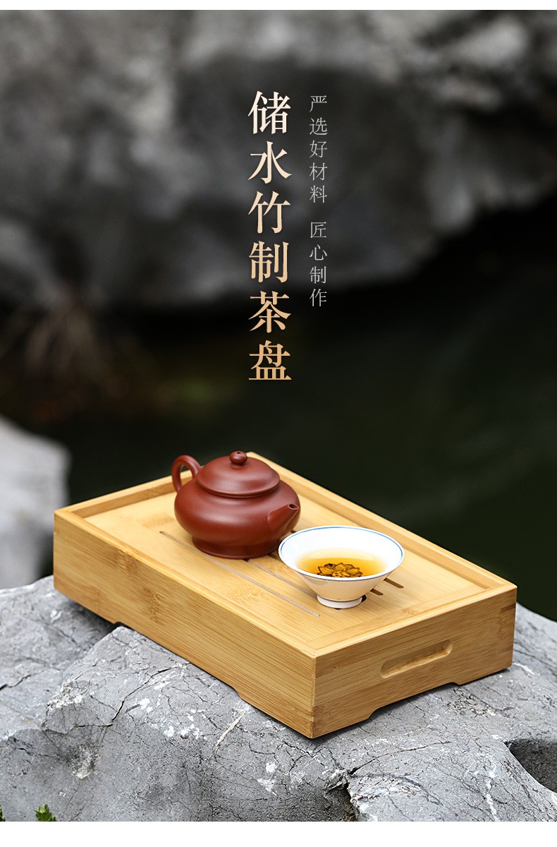 Zanghutianxia Bamboo Water Storage Tea Tray Living Room Kung Fu Tea Set Household Minimalist Tray Heat-Resistant Drain Teapot Pl