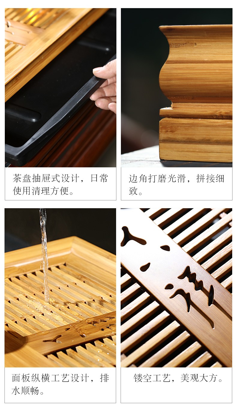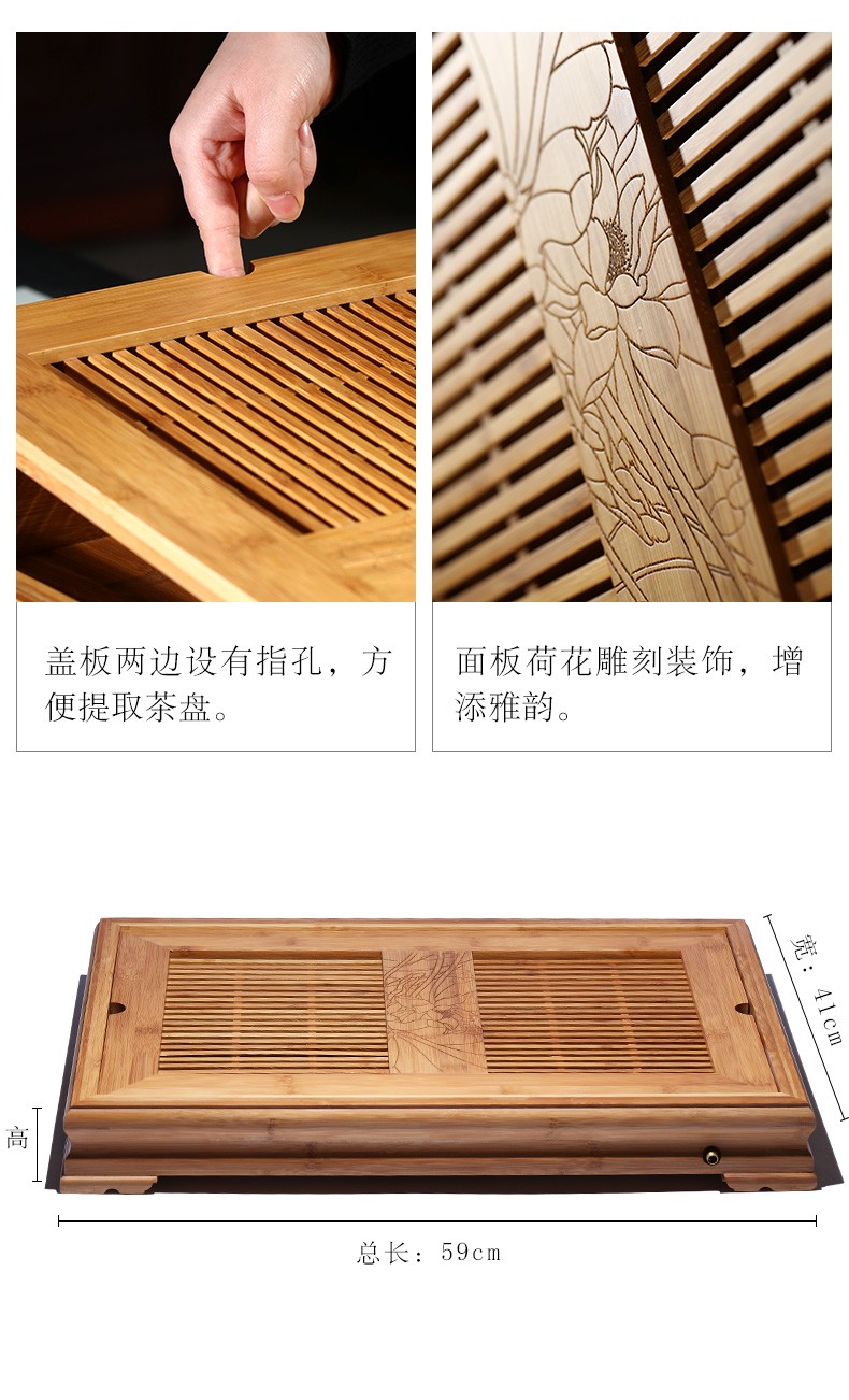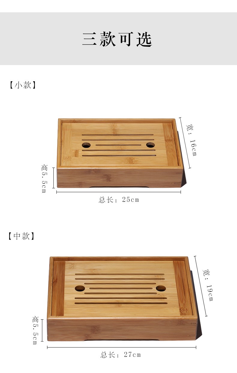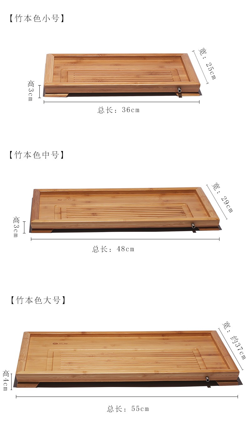 Zanghutianxia Bamboo Water Storage Tea Tray Living Room Kung Fu Tea Set Household Minimalist Tray Heat-Resistant Drain Teapot Pl
