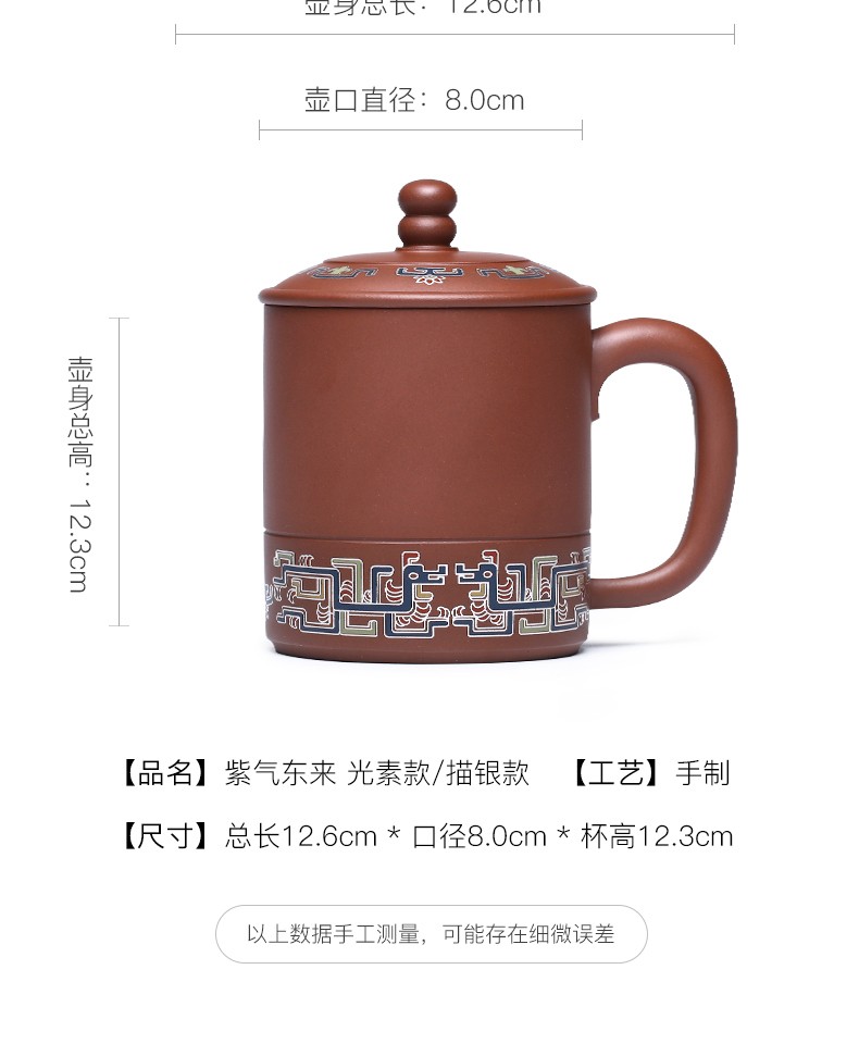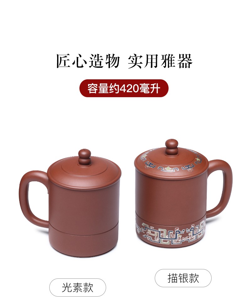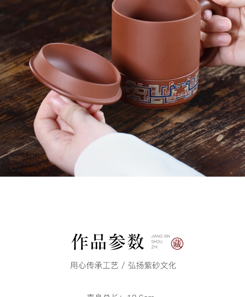 Zanghutianxia Large Capacity Yixing Zisha Cup Handmade Men's Tea Cup Personal Dedicated Office Teaware Chinese Style with Cover