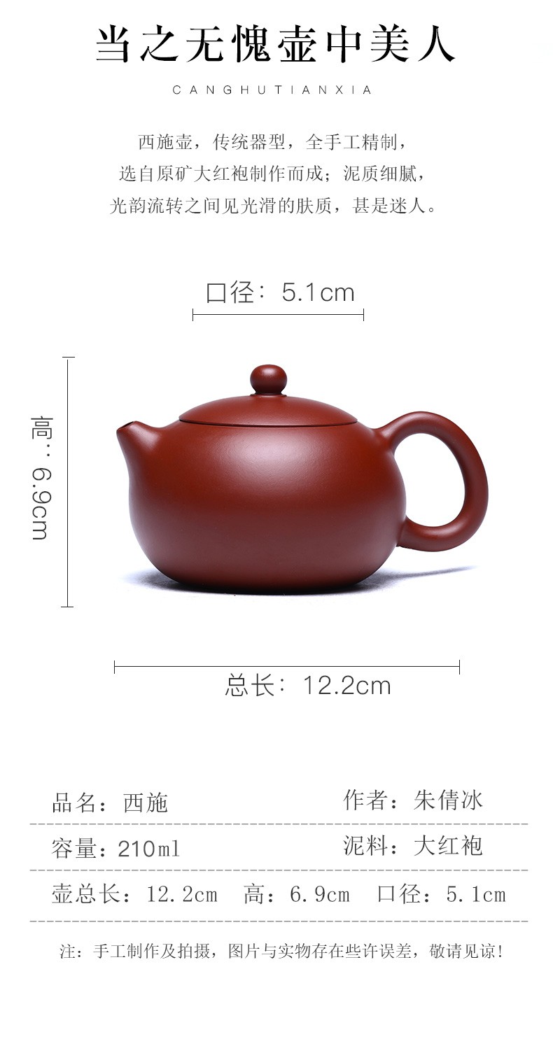 Zanghutianxia Purple Clay Teapot Pure Handmade Teapot Zhu Qianbing Dahongpao Tea Xi Shi Household Single Teapot Kung Fu Tea Set