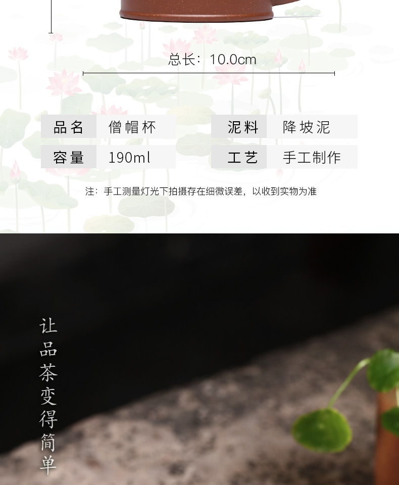 Zanghutianxia Small Capacity Yixing Zisha Cup Handmade Tea Cup Personal Dedicated Office Teaware Chinese Mitre Cup with Cover Mi