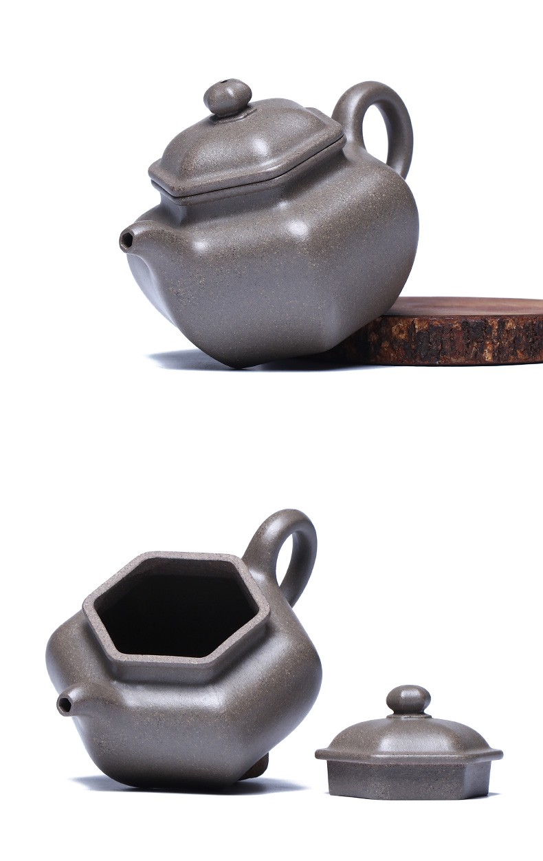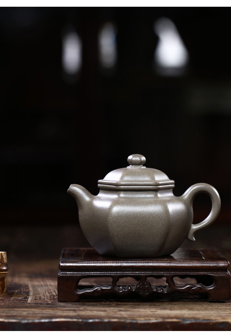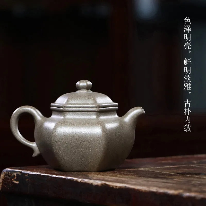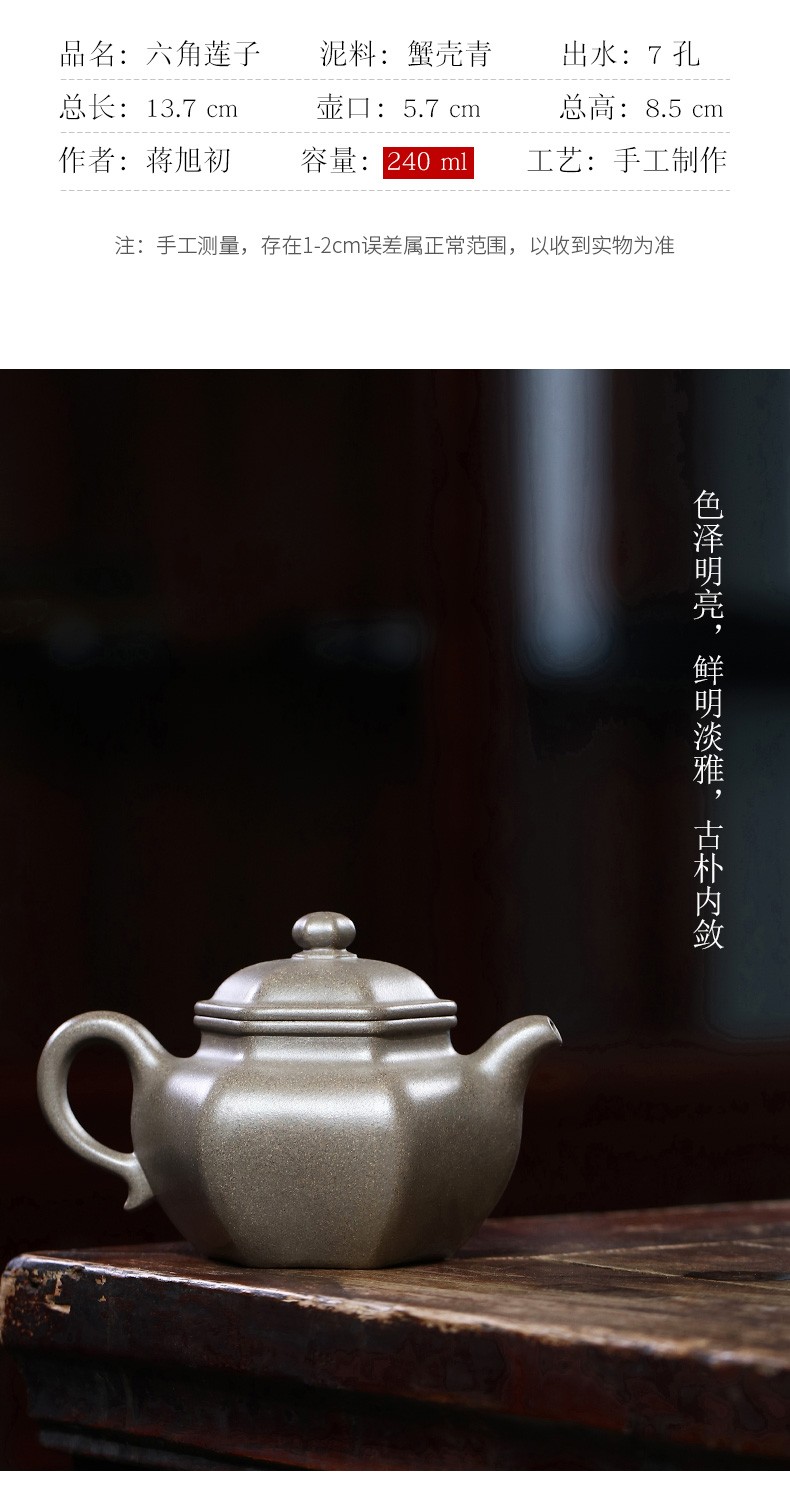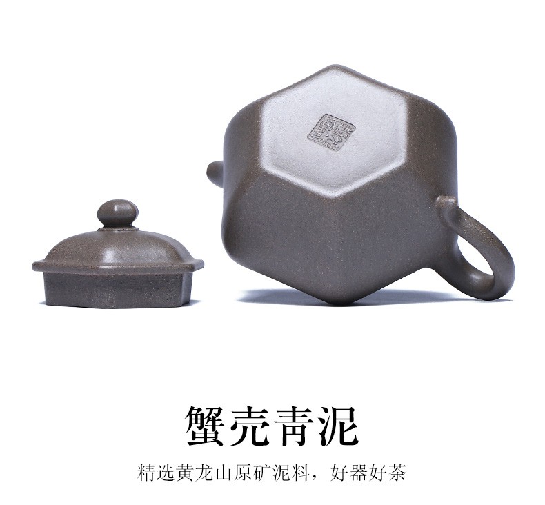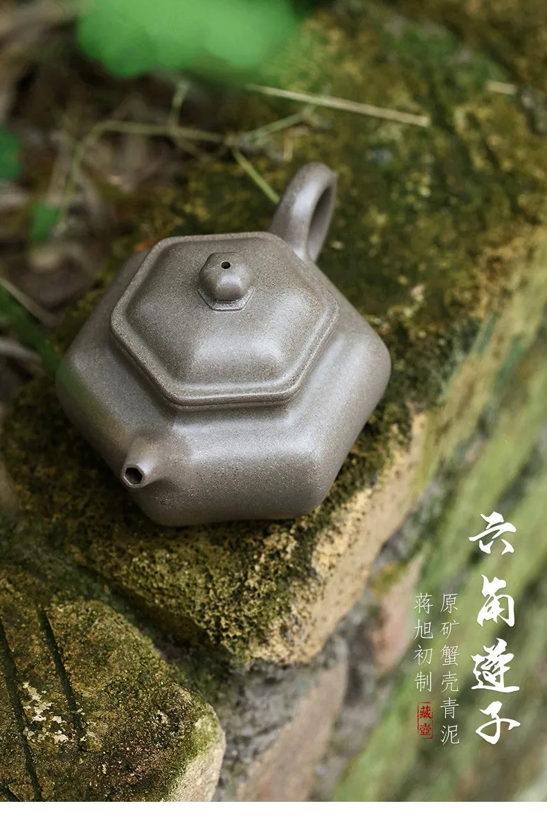 Zanghutianxia Yixing Famous Teapot Handmade Teapot Single Teapot Tea Set Raw Ore Crabshell Green Handmade Hexagonal Lotus Seed H