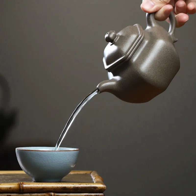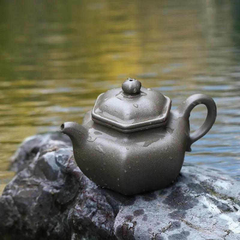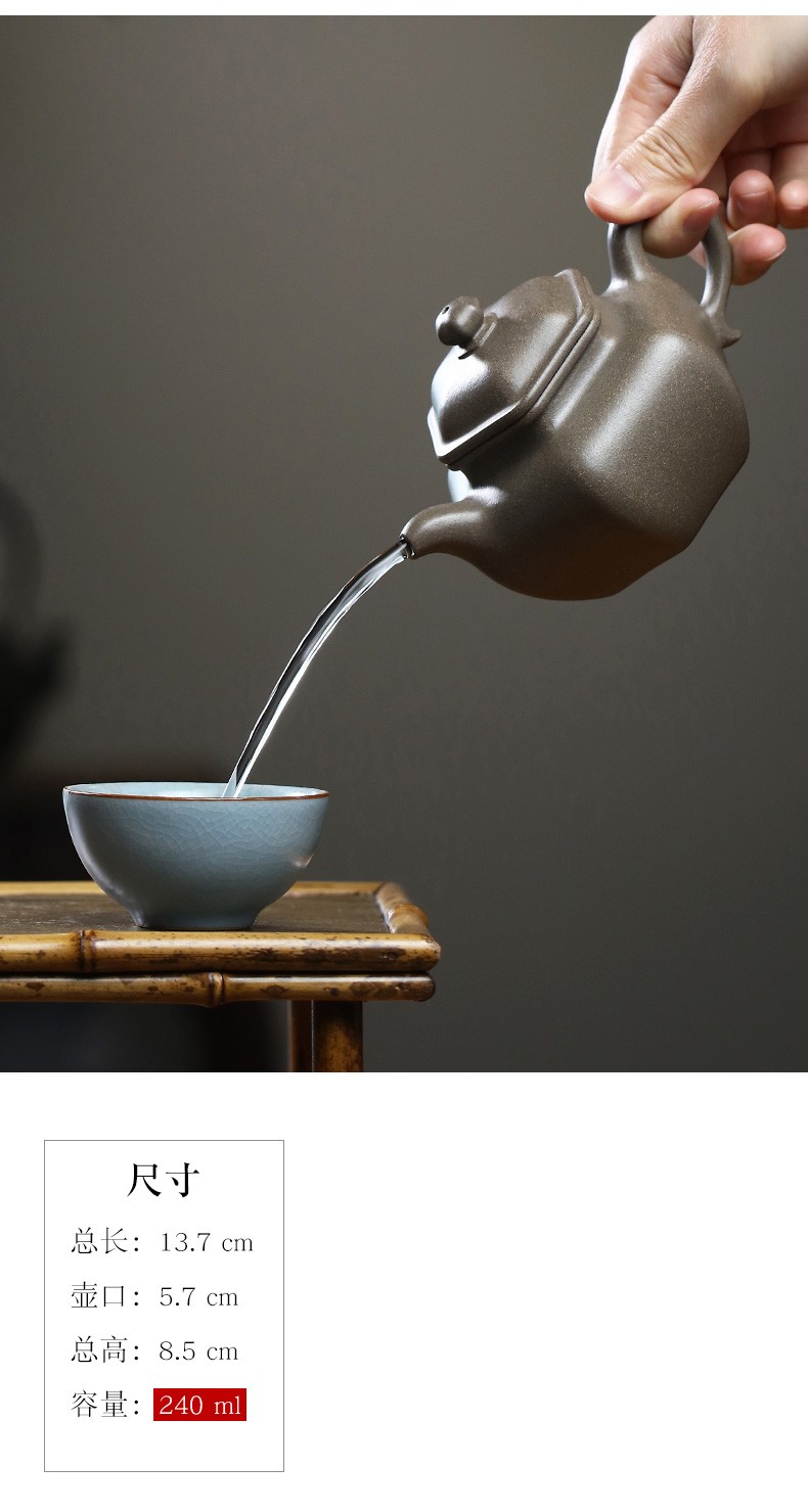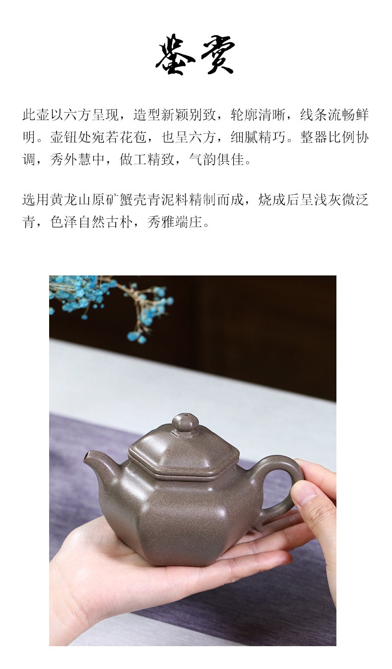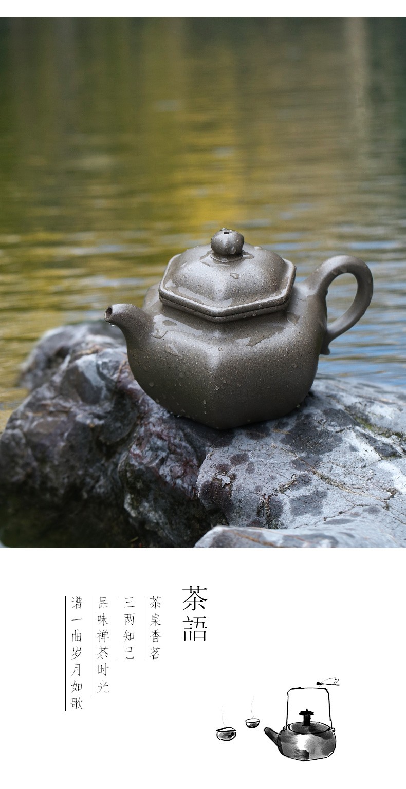 Zanghutianxia Yixing Famous Teapot Handmade Teapot Single Teapot Tea Set Raw Ore Crabshell Green Handmade Hexagonal Lotus Seed H