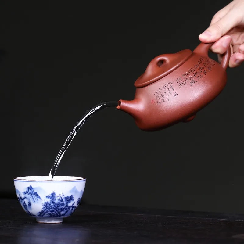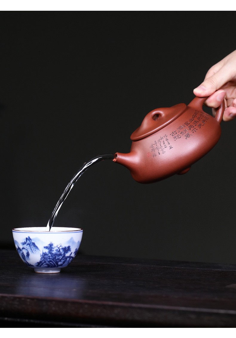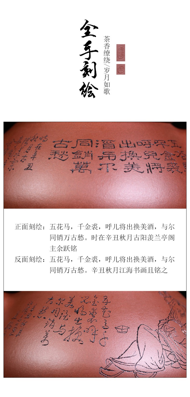 Zanghutianxia Yixing Purple Clay Pot Famous Chinese Worker Yu Yue All Hand-Carved Raw Ore Bottom Trough Clear Capacity Jingzhou